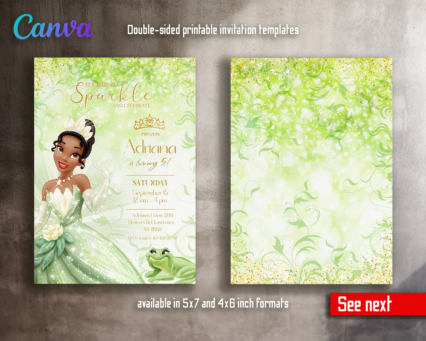 Tiana Frog Princess customizable invitation template | Share or Print | girl | GP298
