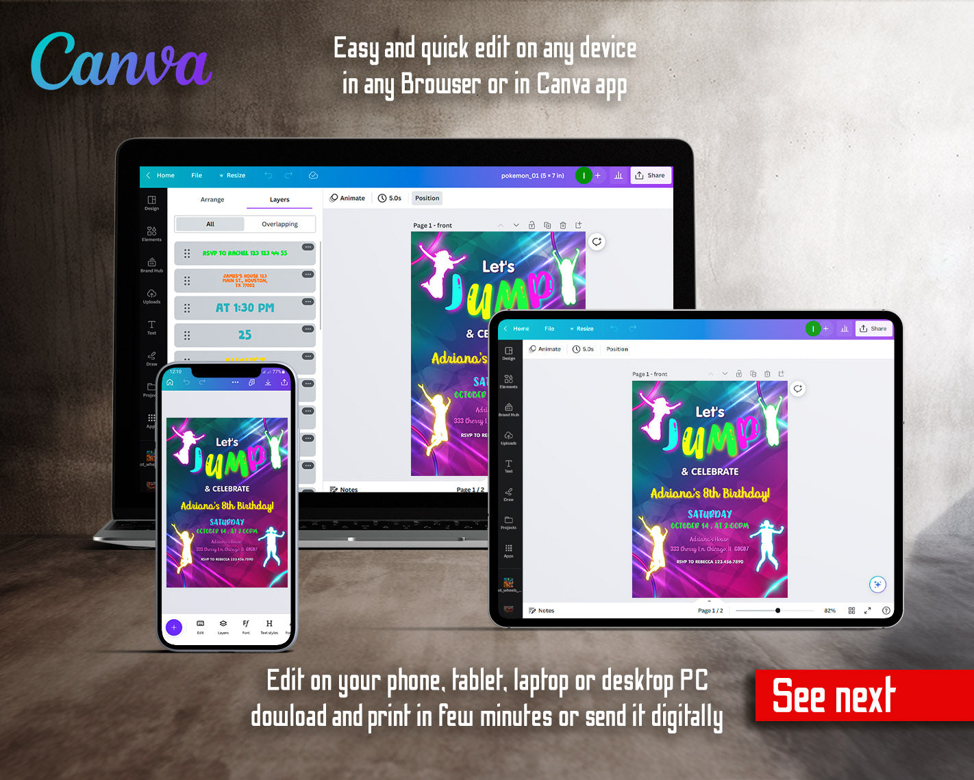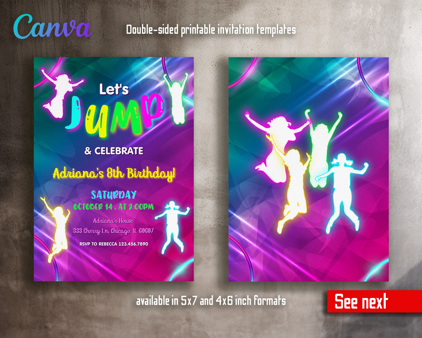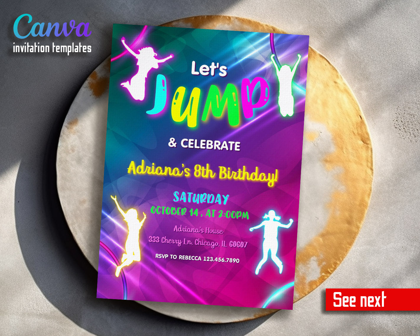 Related Tags: jump invitation, jump birthday, trampoline invite, trampoline birthday, trampoline party, play invite, editable invitation, birthday invitation, printable invitation, invite template, evite, girl birthday,