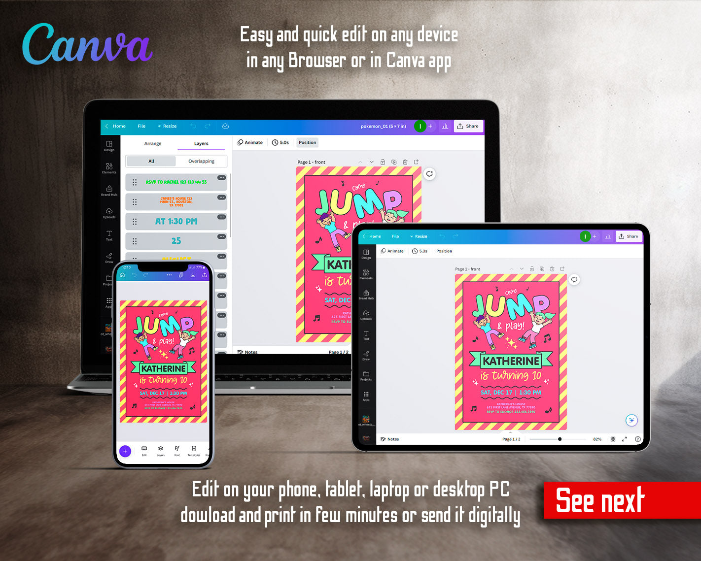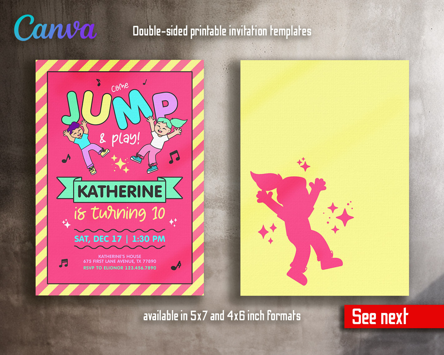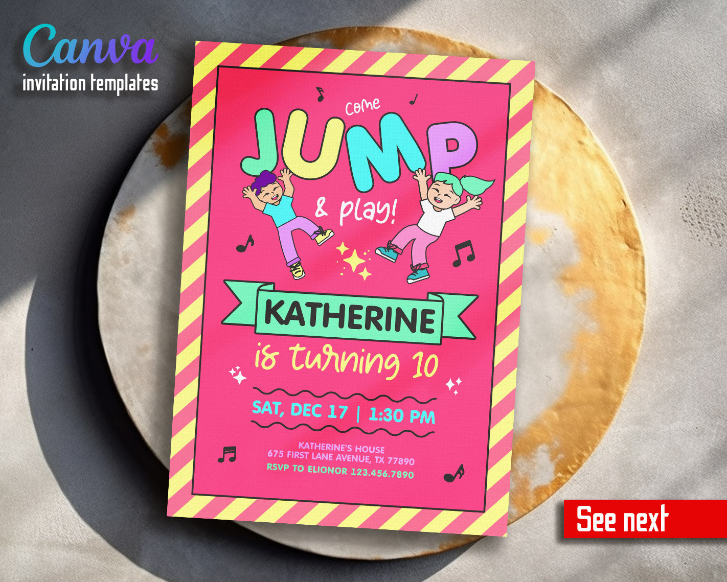 Related Tags: jump invitation, jump birthday, trampoline invite, trampoline birthday, trampoline party, play invite, editable invitation, birthday invitation, printable invitation, invite template, evite, girl birthday,