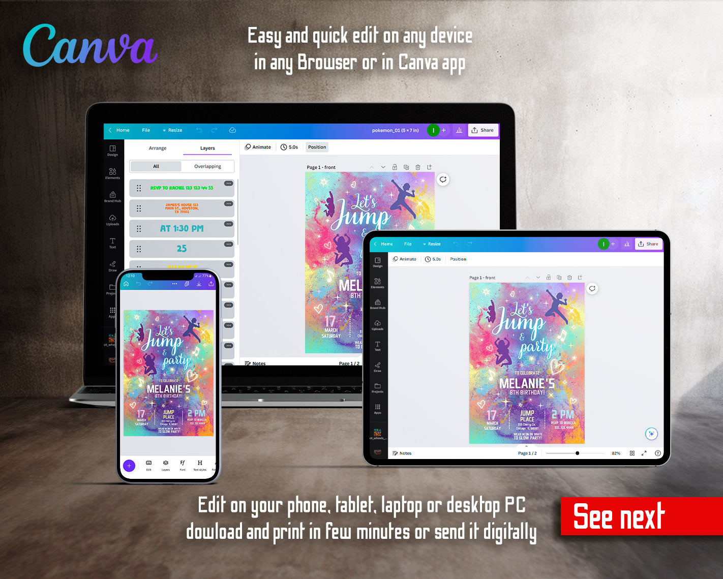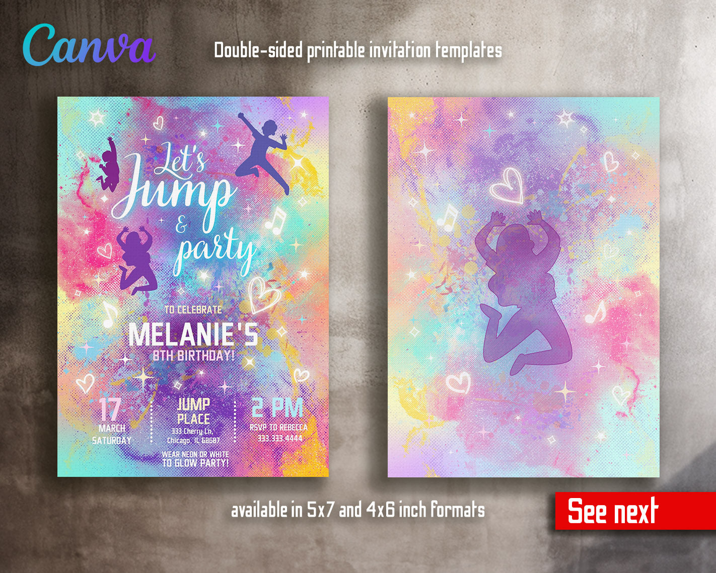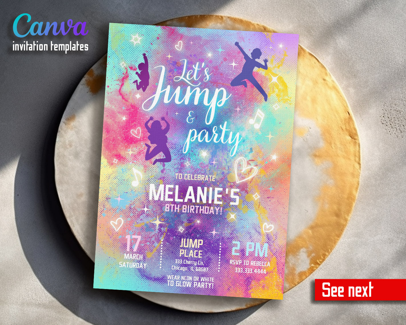 Related Tags: jump invitation, jump birthday, trampoline invite, trampoline birthday, trampoline party, play invite, editable invitation, birthday invitation, printable invitation, invite template, evite, girl birthday,