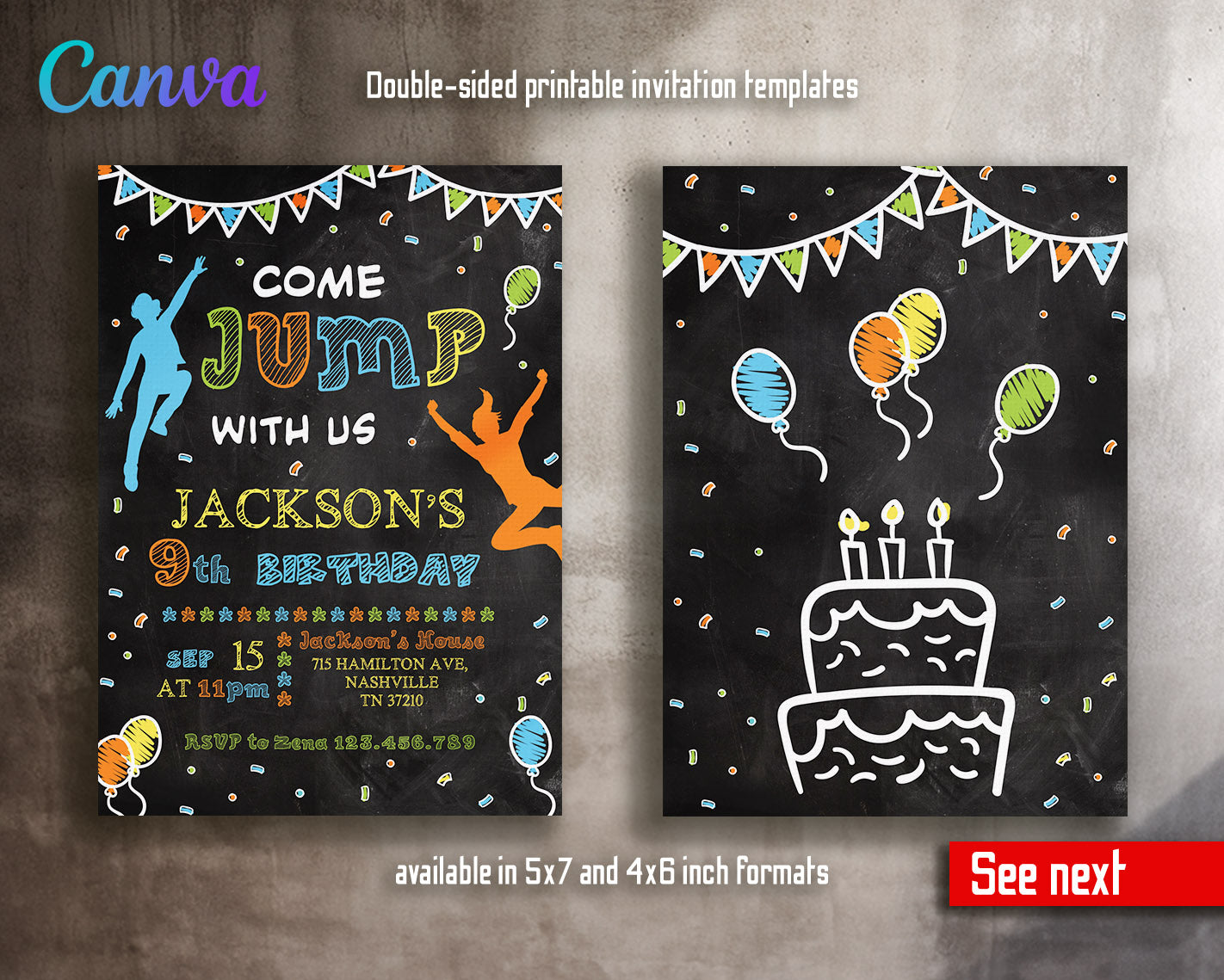 All the invitations are for self-editing. You will edit your template in Canva. It’s easy whether you're using the web browser or the app.