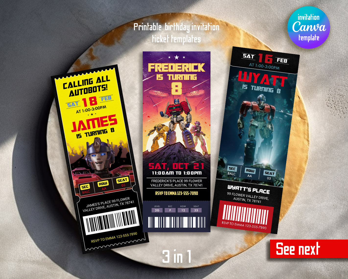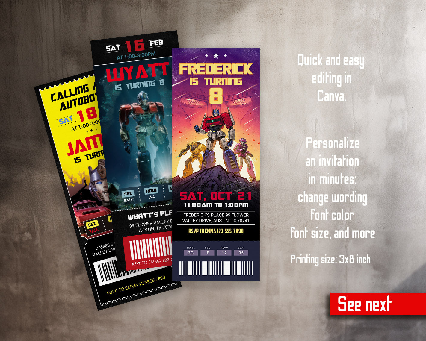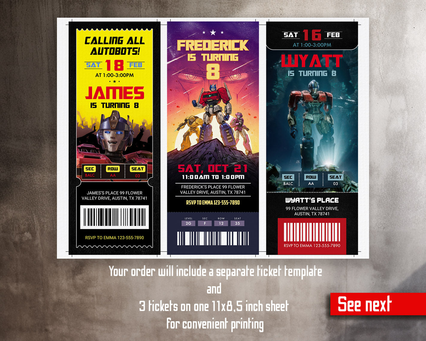 Related Tags: Bumblebee invitation, transforemer invite, Optimus Prime invite, Rescue Bots Invite, movie party ticket, Autobots invitation, ticket invitation, birthday invitation, printable invitation, transformers invite, transformers party, rescue bots birthday, boy birthday