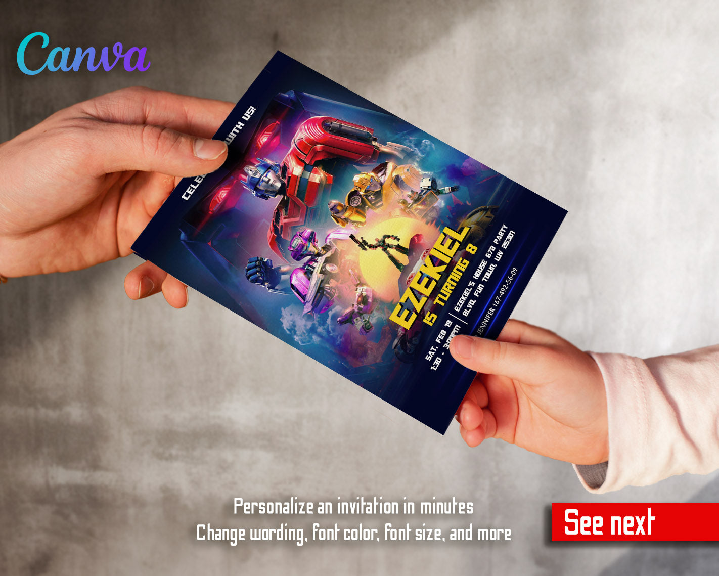 Printable Editable customizable Transformers One Rescue Bots birthday party invitation digital template. Instant download invite.