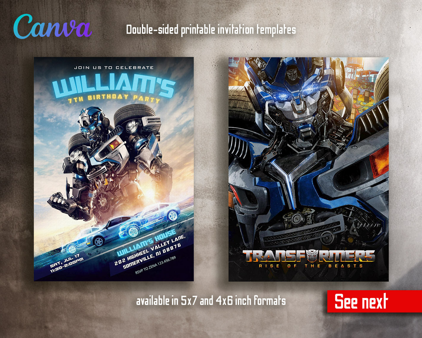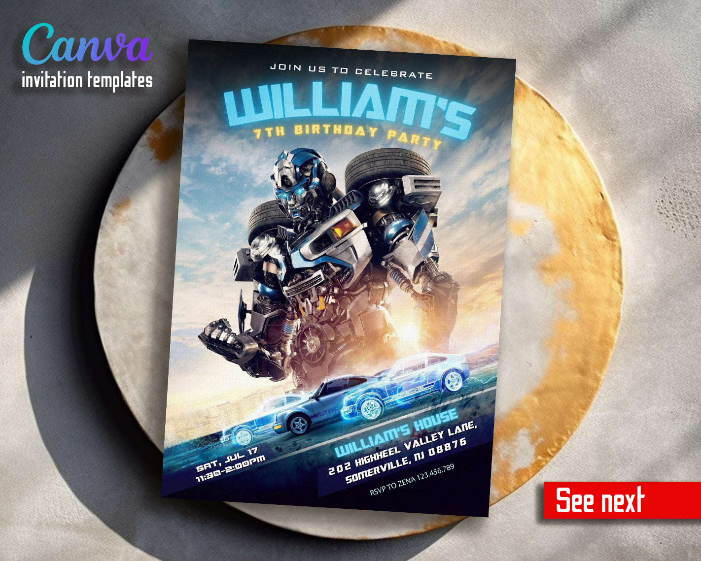 Related Tags: boy birthday, transformers party, rescue bots invite, rescue bots birthday, rise of the beasts, optimus primal, editable invitation, birthday invitation, printable invitation, transformers invite, optimus prime evite, gorilla transformer,