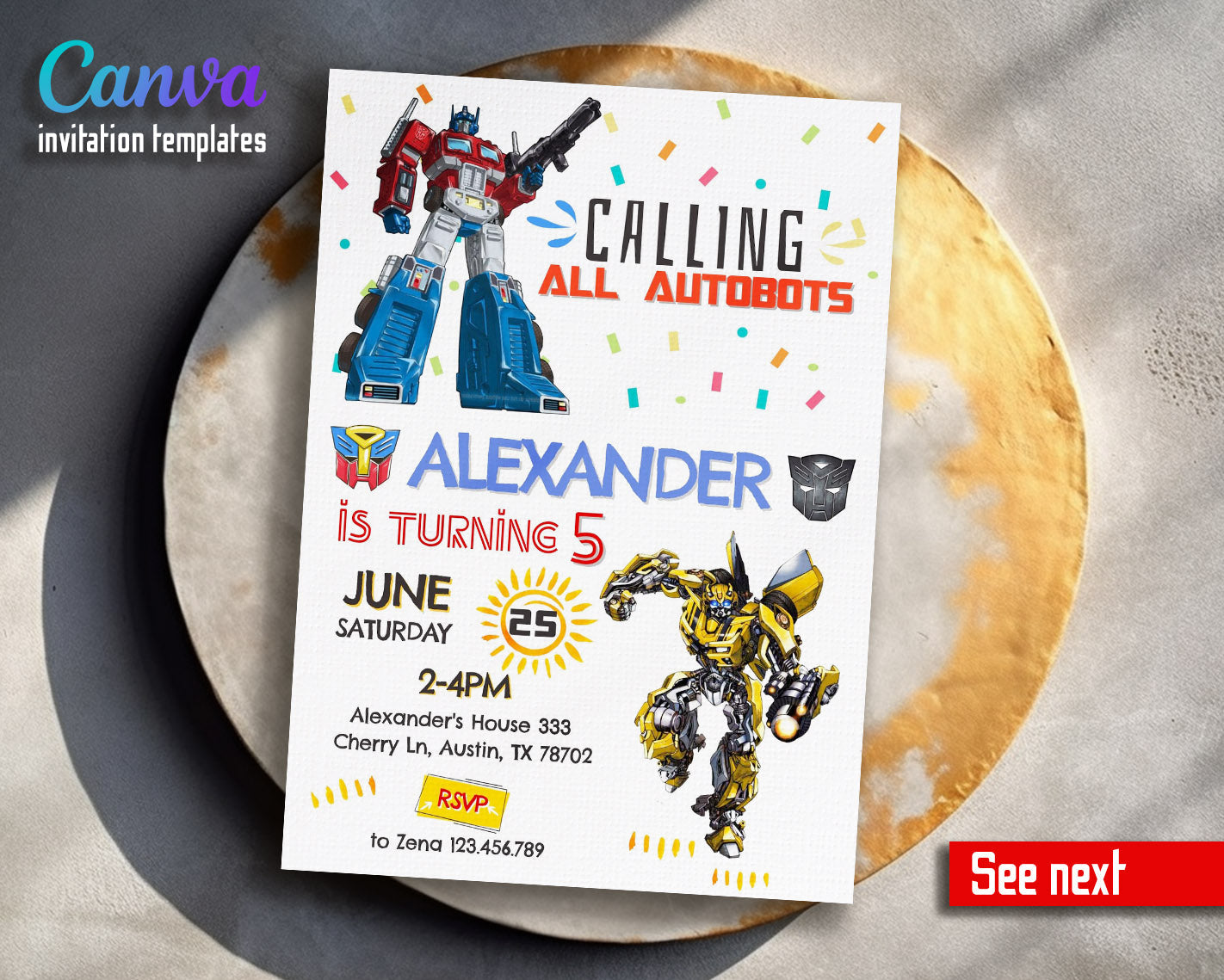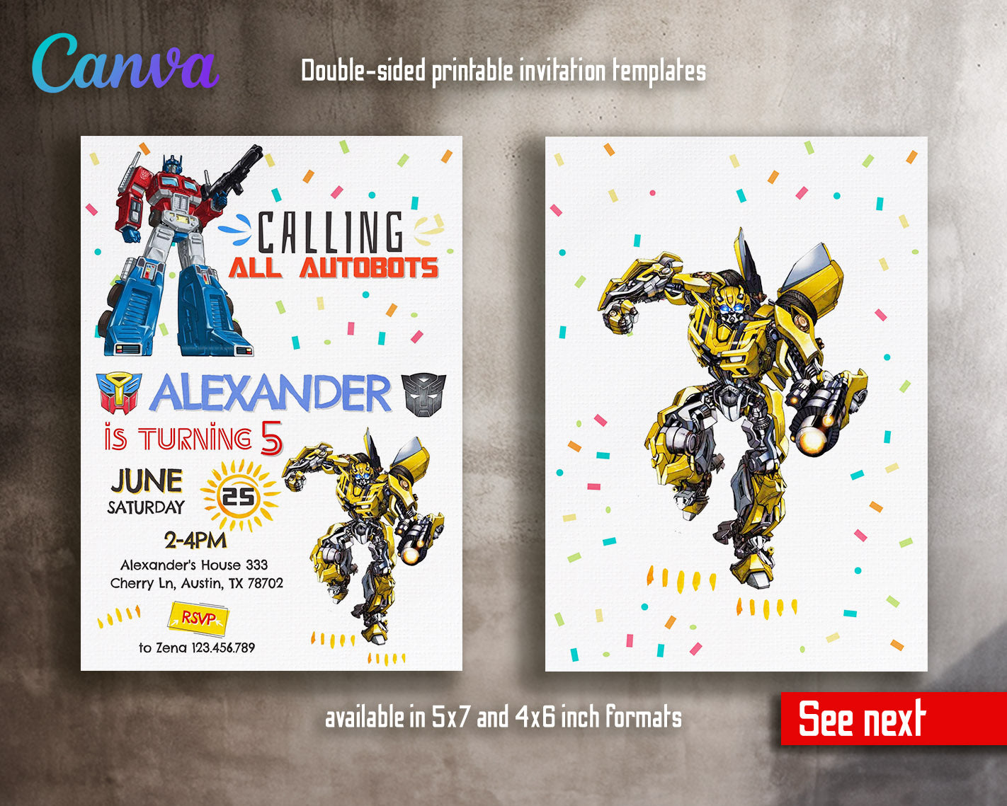 Related Tags: Bumblebee invitation, transforemer invite, Optimus Prime invite, Rescue Bots Invite, rescue bot party, Autobots invitation, editable invitation, birthday invitation, printable invitation, transformers one, transformers party, rescue bots birthday, boy birthday