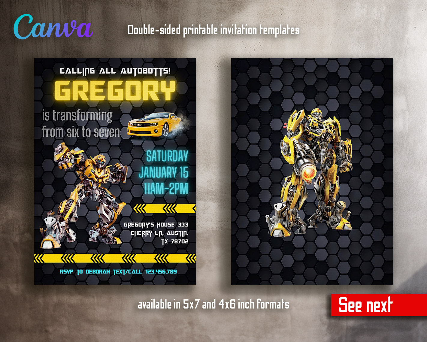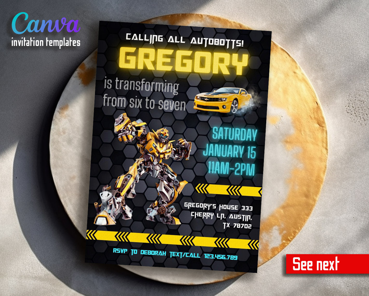 Related Tags: Bumblebee invitation, transforemer invite, Optimus Prime invite, Rescue Bots Invite, rescue bot party, Autobots invitation, editable invitation, birthday invitation, printable invitation, transformers one, transformers party, rescue bots birthday, boy birthday