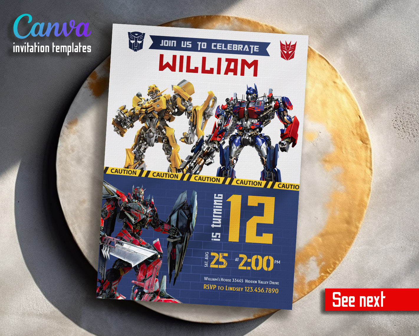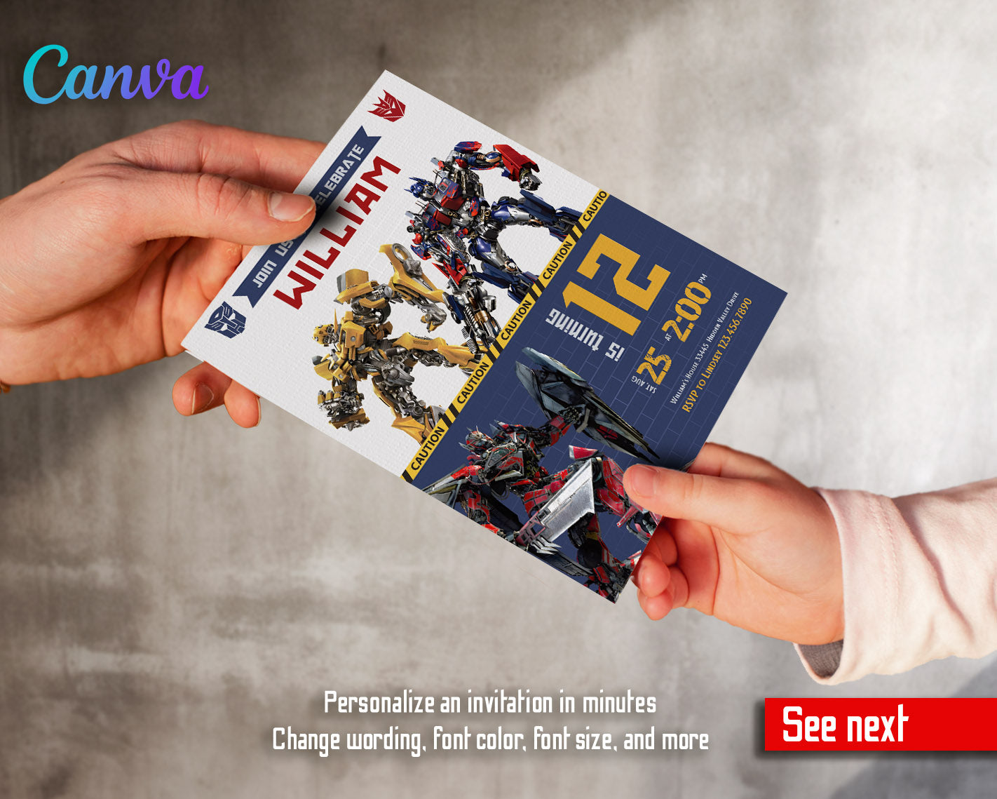 Related Tags: Bumblebee invitation, transforemer invite, Optimus Prime invite, Rescue Bots Invite, rescue bot party, Autobots invitation, editable invitation, birthday invitation, printable invitation, transformers one, transformers party, rescue bots birthday, boy birthday