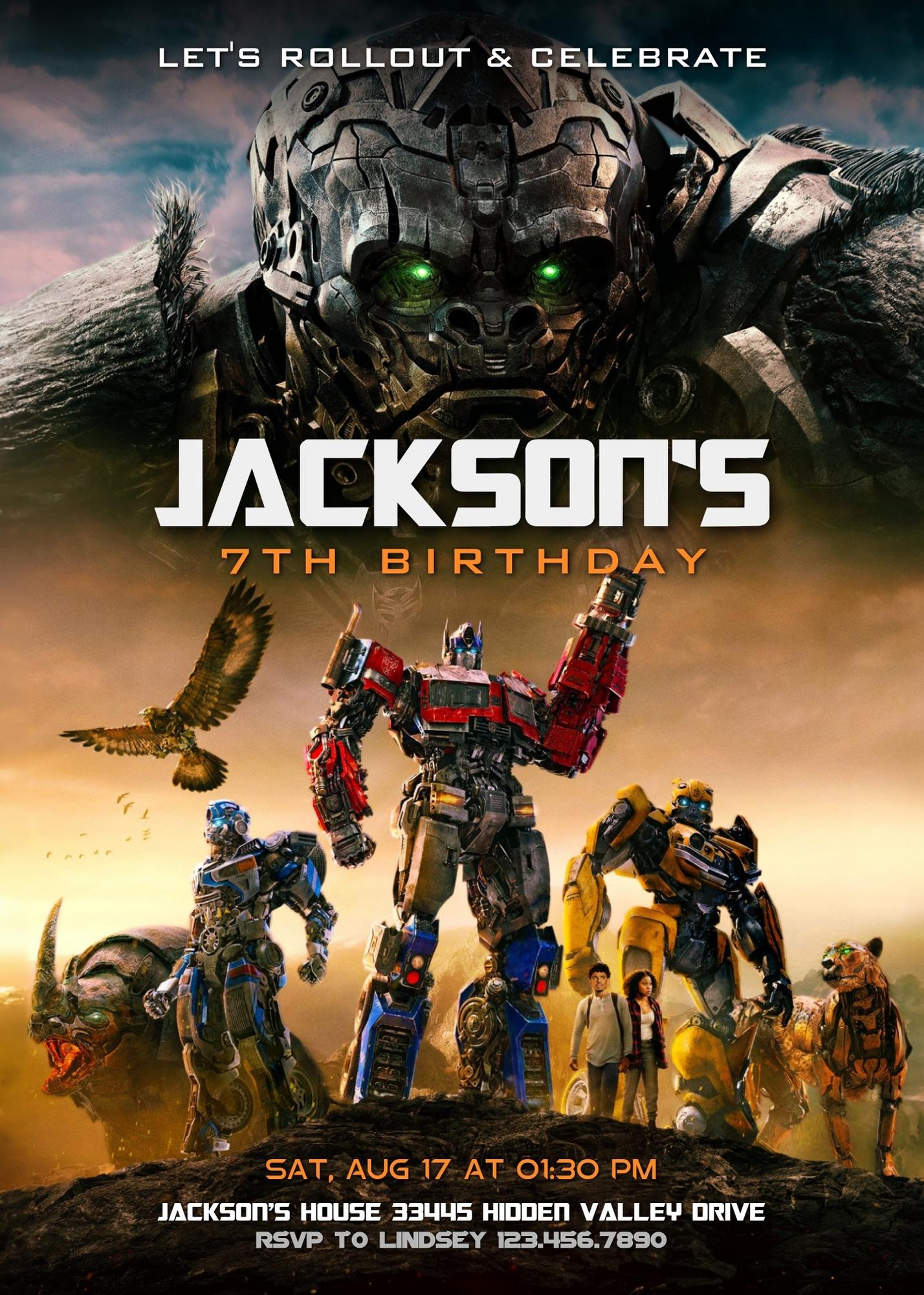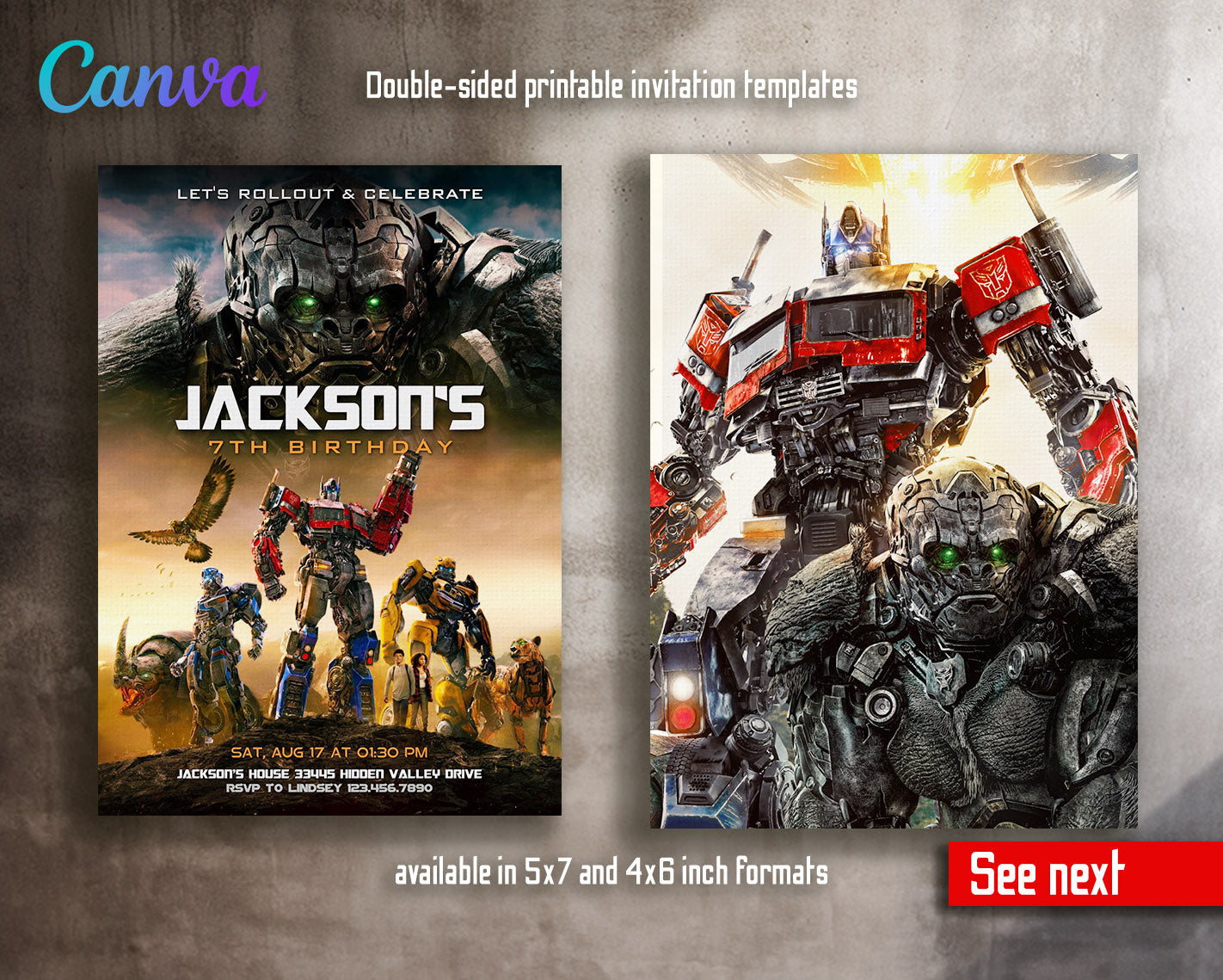 Related Tags: boy birthday, transformers party, rescue bots invite, rescue bots birthday, rise of the beasts, optimus primal, editable invitation, birthday invitation, printable invitation, transformers invite, optimus prime evite, gorilla transformer,