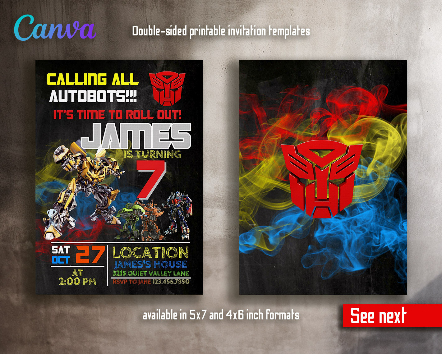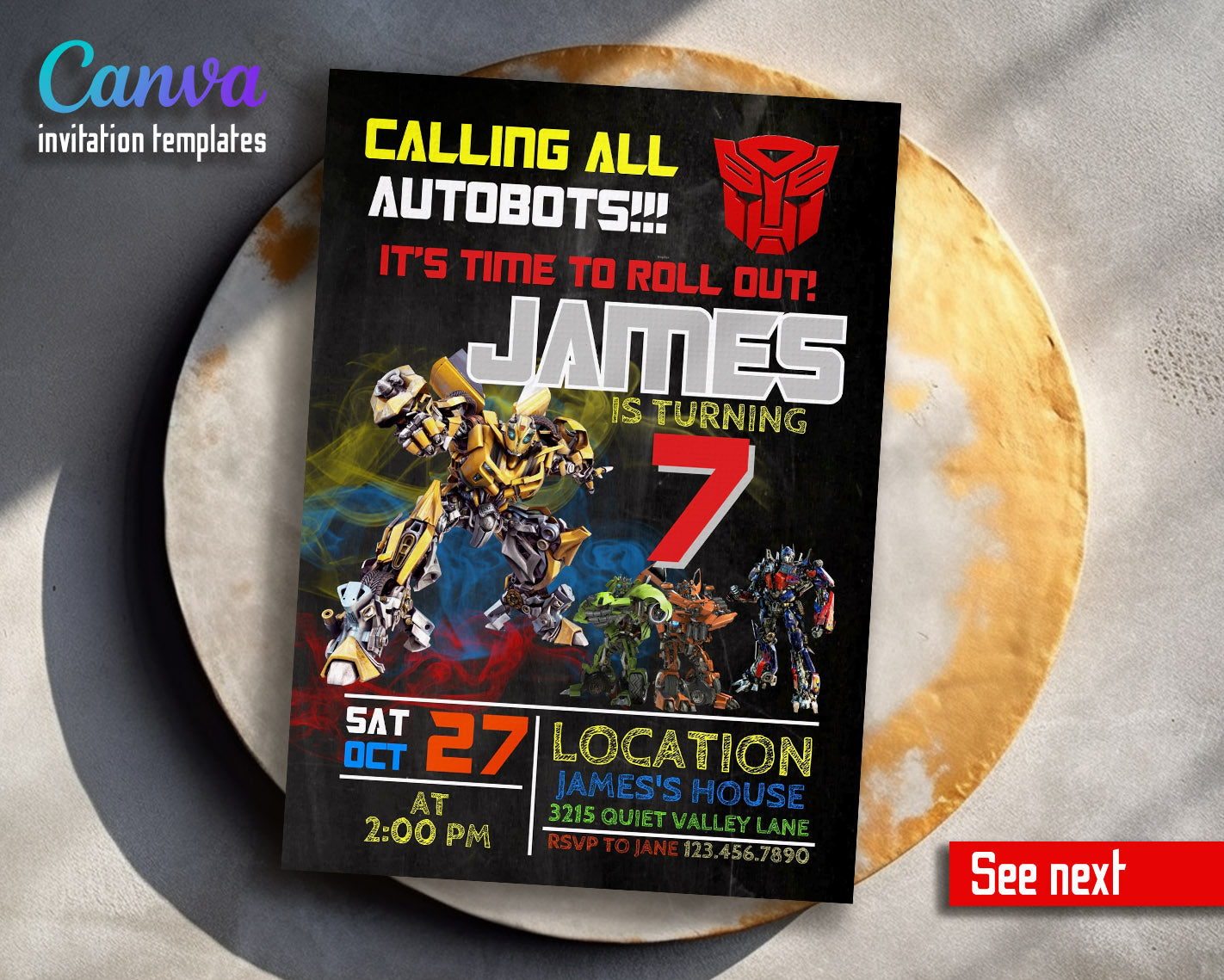 Related Tags: Bumblebee invitation, transforemer invite, Optimus Prime invite, Rescue Bots Invite, rescue bot party, Autobots invitation, editable invitation, birthday invitation, printable invitation, transformers one, transformers party, rescue bots birthday, boy birthday