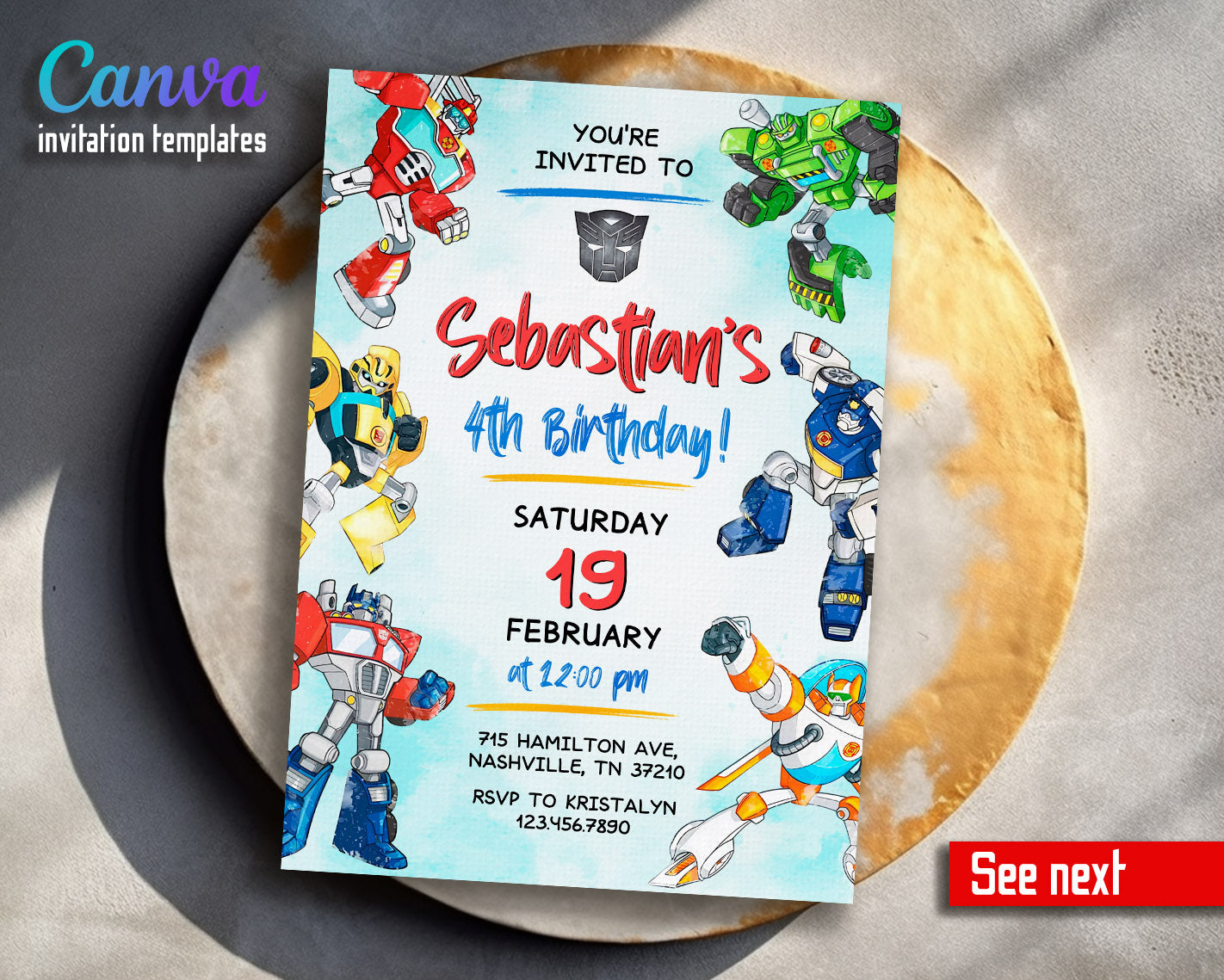 Related Tags: transformers invite, transformer birthday, rescue bots invite, rescue invitation, rescue bots party, optimus prime invite, editable invitation, birthday invitation, printable invitation, invite template, bumblebee evite, autobots birthday, boy birthday