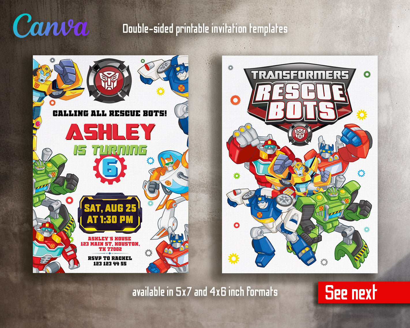 Related Tags: transformers invite, transformer birthday, rescue bots invite, rescue invitation, rescue bots party, optimus prime invite, editable invitation, birthday invitation, printable invitation, invite template, bumblebee evite, autobots birthday, boy birthday