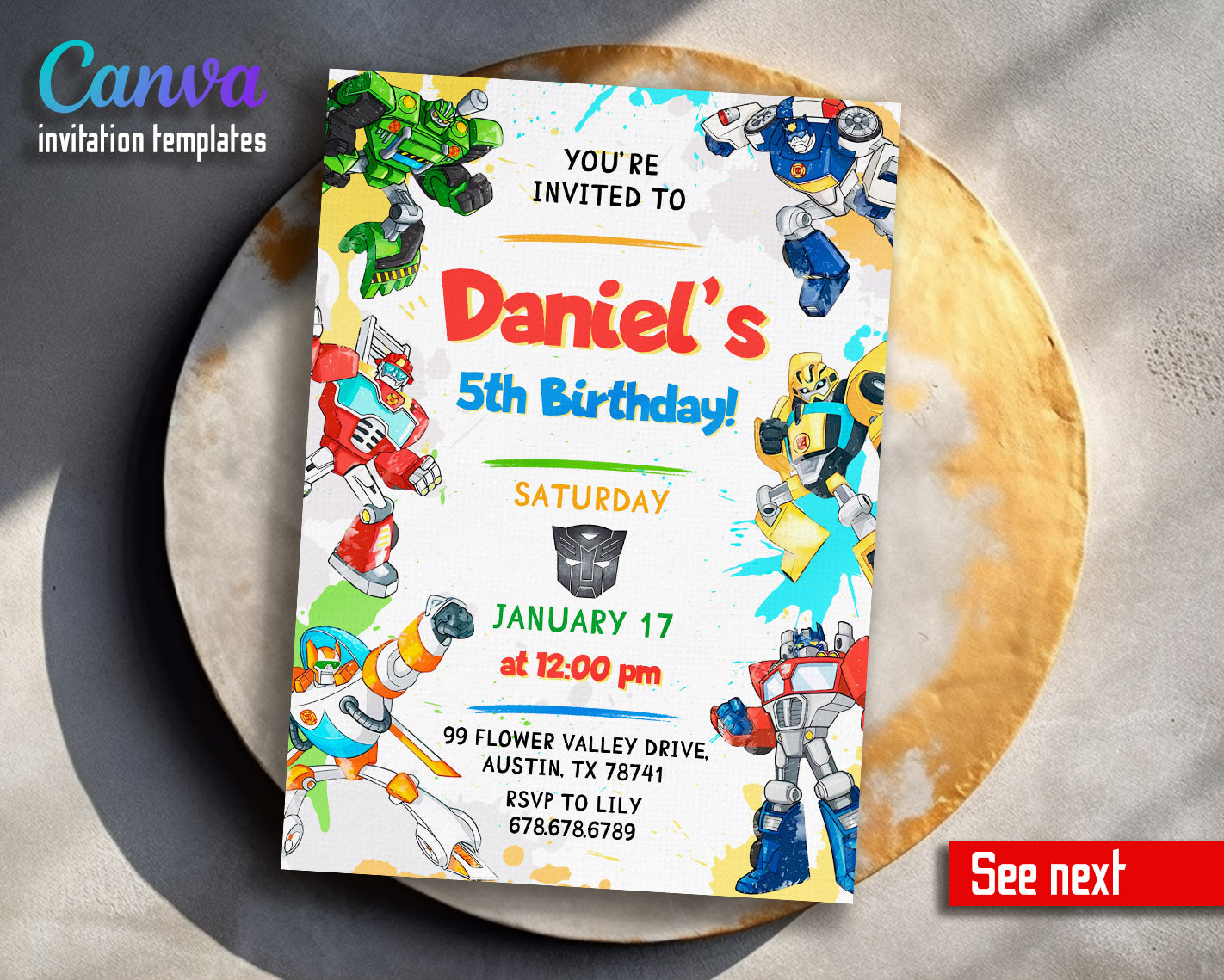 Related Tags: transformers invite, transformer birthday, rescue bots invite, rescue invitation, rescue bots party, optimus prime invite, editable invitation, birthday invitation, printable invitation, invite template, bumblebee evite, autobots birthday, boy birthday