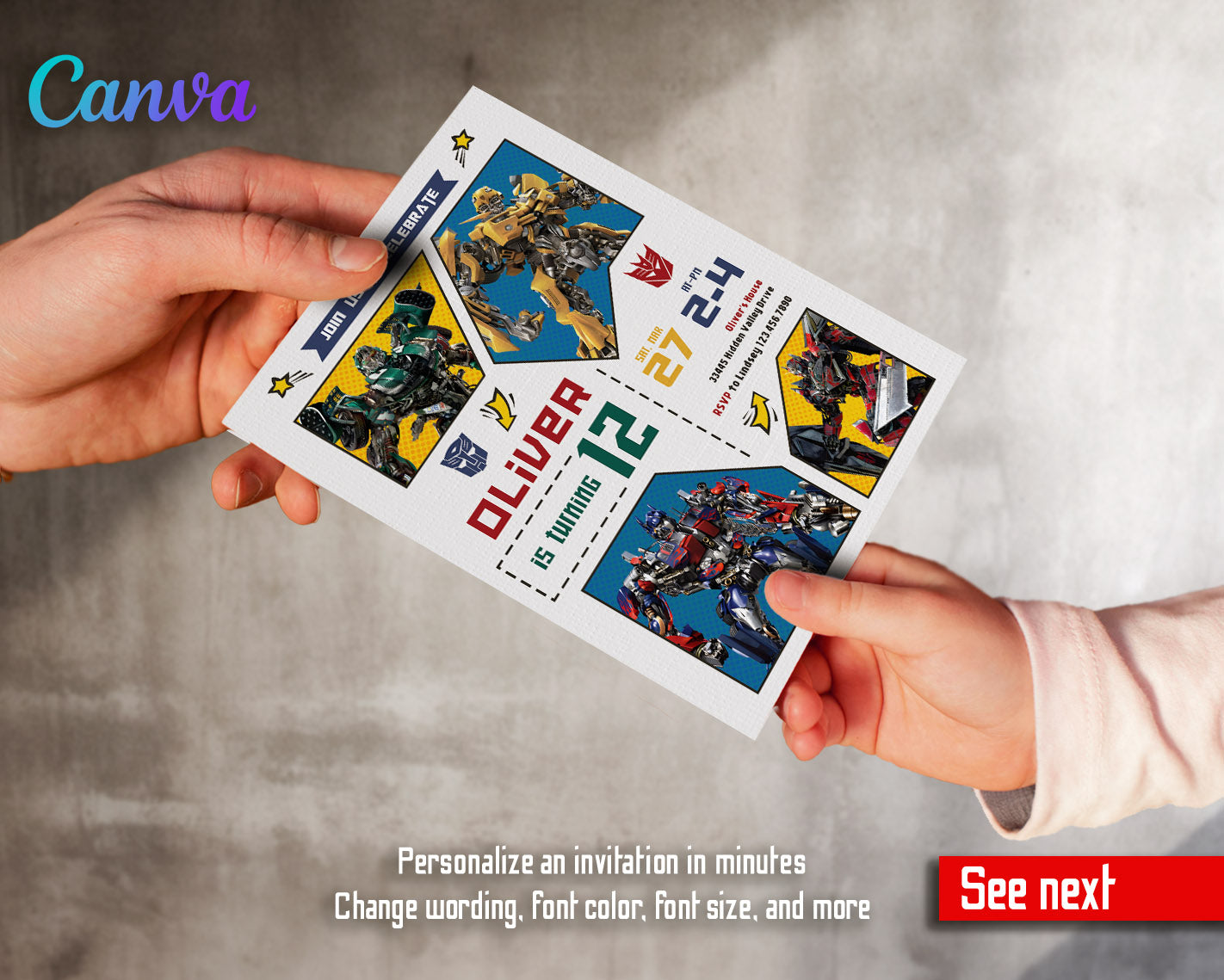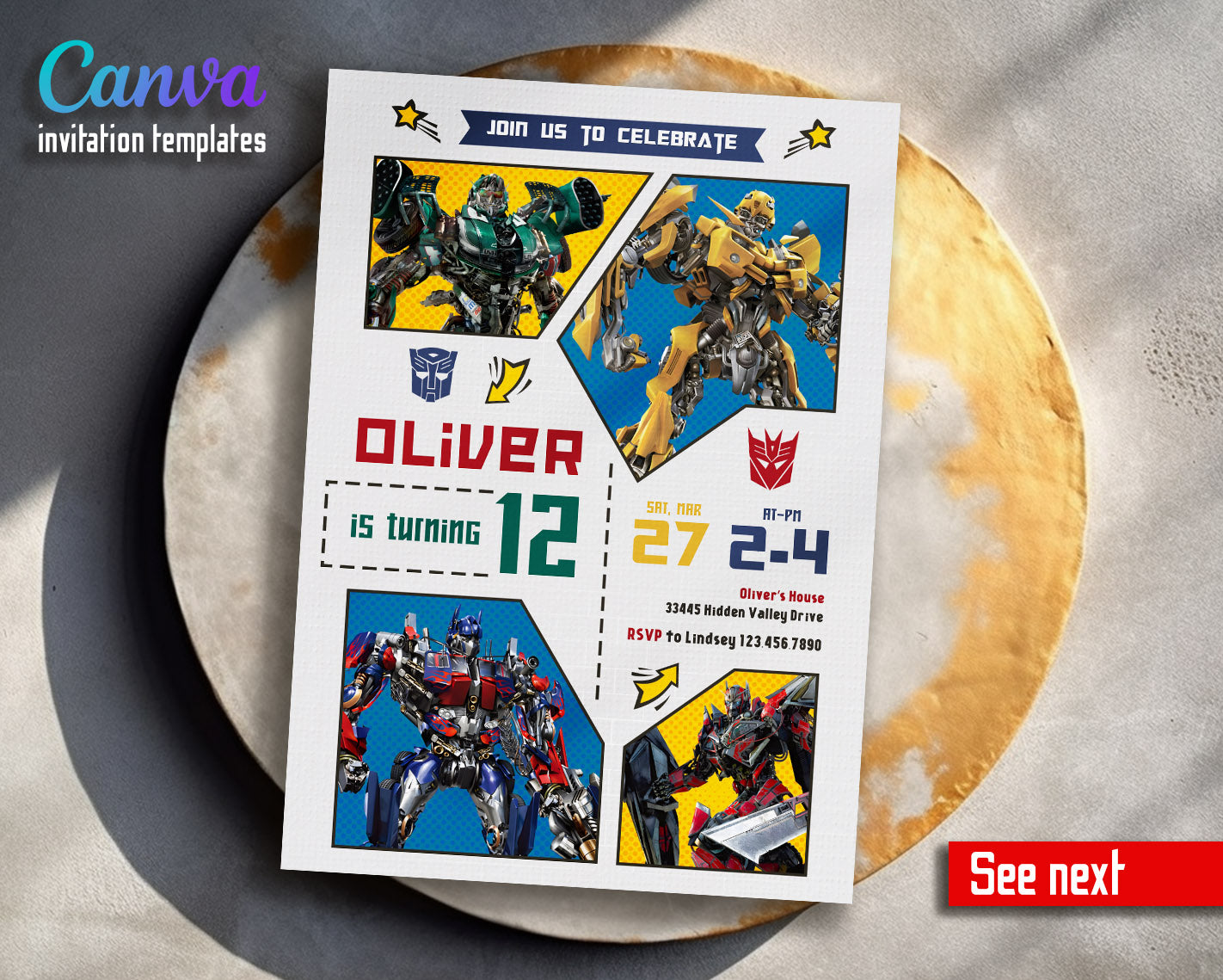 Related Tags: Bumblebee invitation, transforemer invite, Optimus Prime invite, Rescue Bots Invite, rescue bot party, Autobots invitation, editable invitation, birthday invitation, printable invitation, transformers one, transformers party, rescue bots birthday, boy birthday