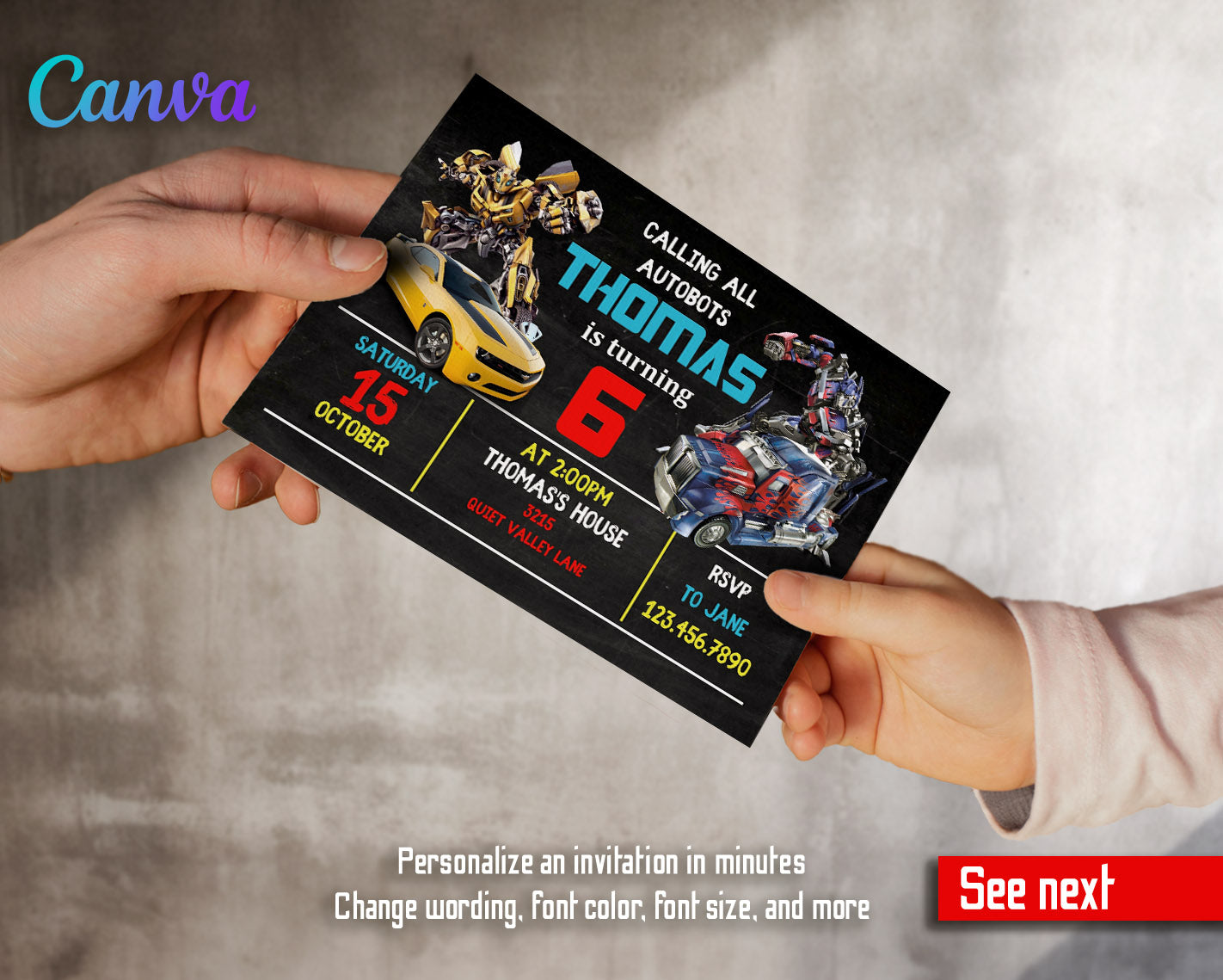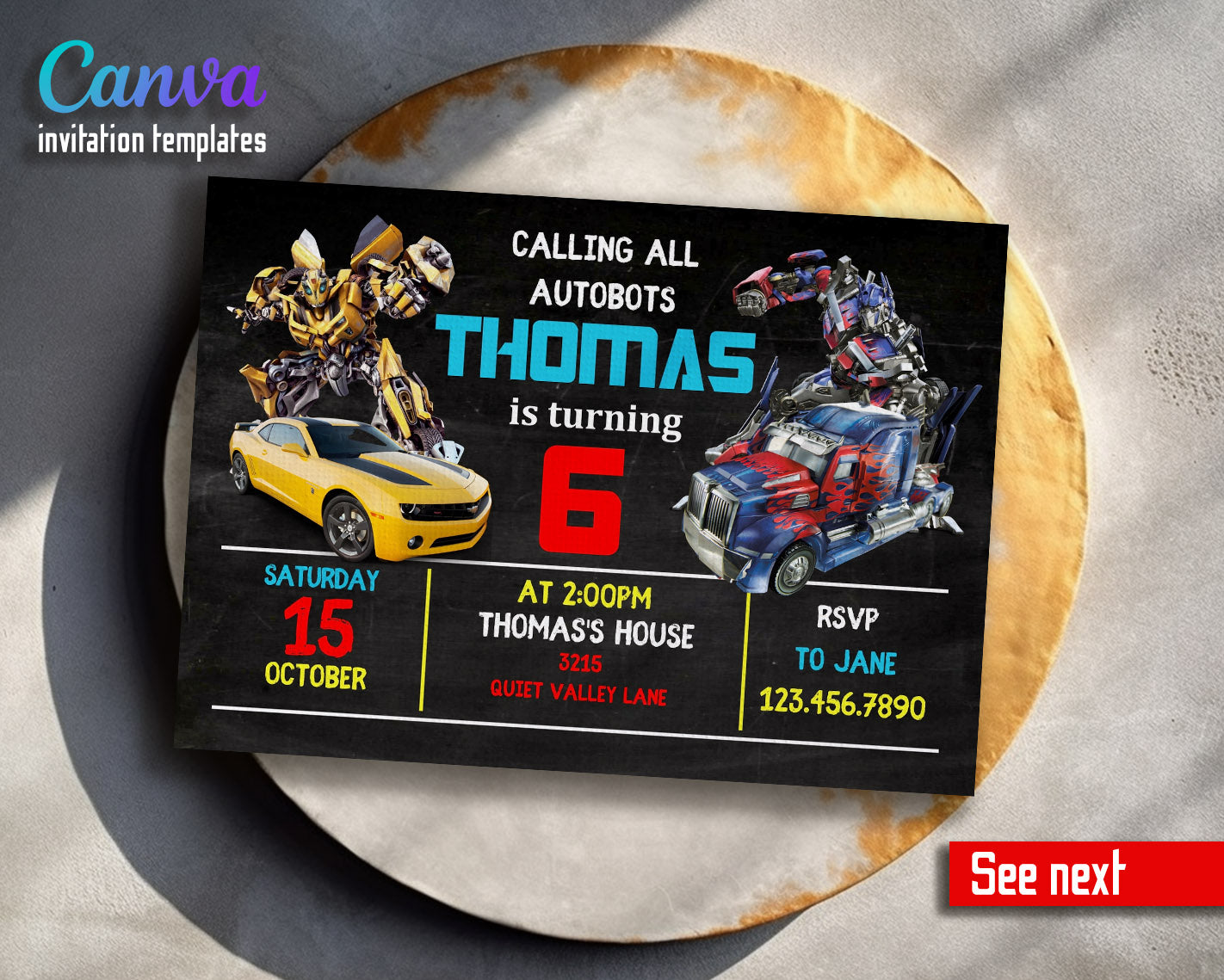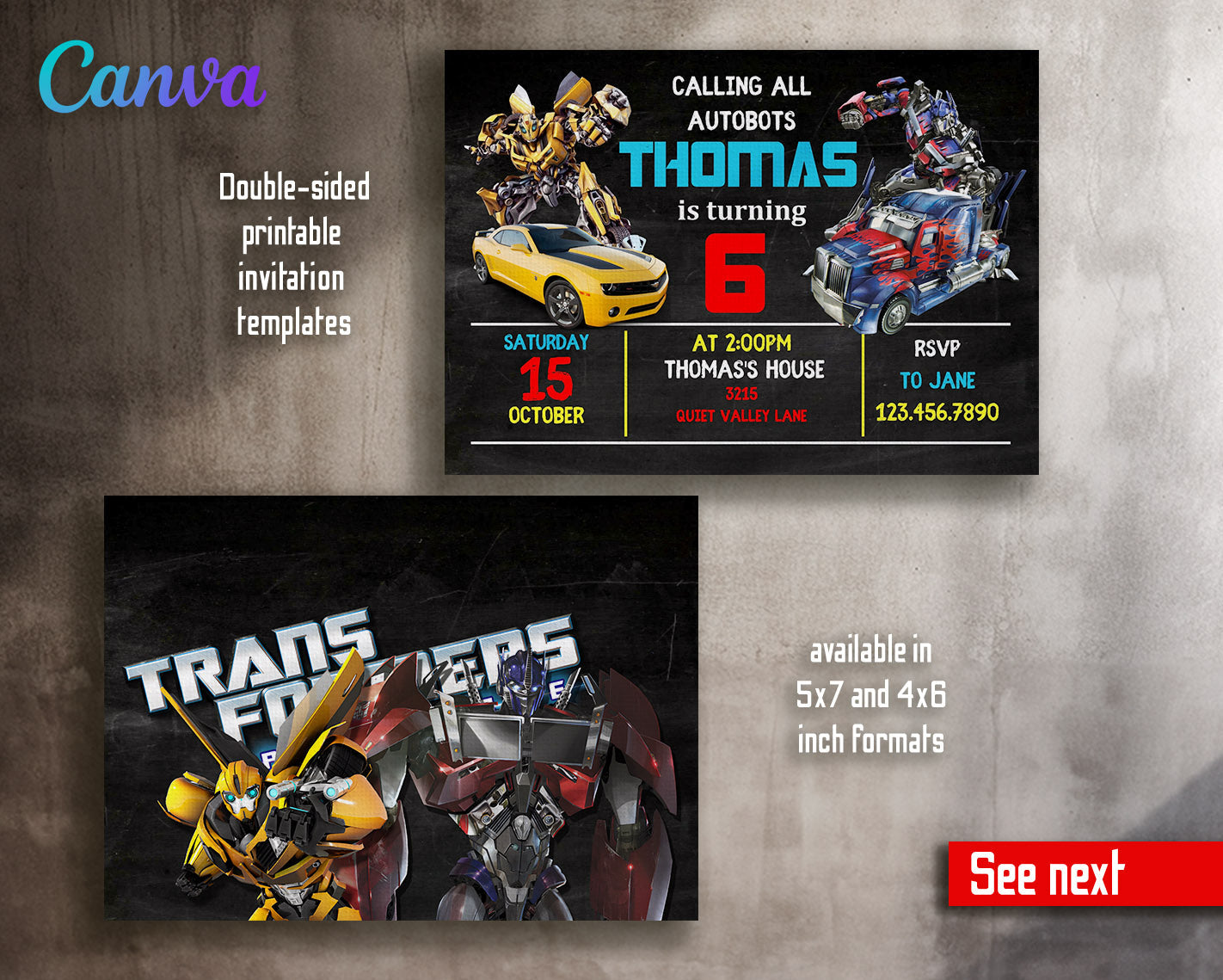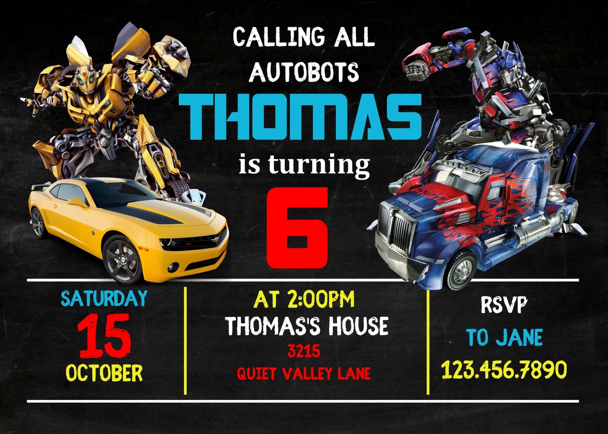 Related Tags: Bumblebee invitation, transforemer invite, Optimus Prime invite, Rescue Bots Invite, rescue bot party, Autobots invitation, editable invitation, birthday invitation, printable invitation, transformers one, transformers party, rescue bots birthday, boy birthday