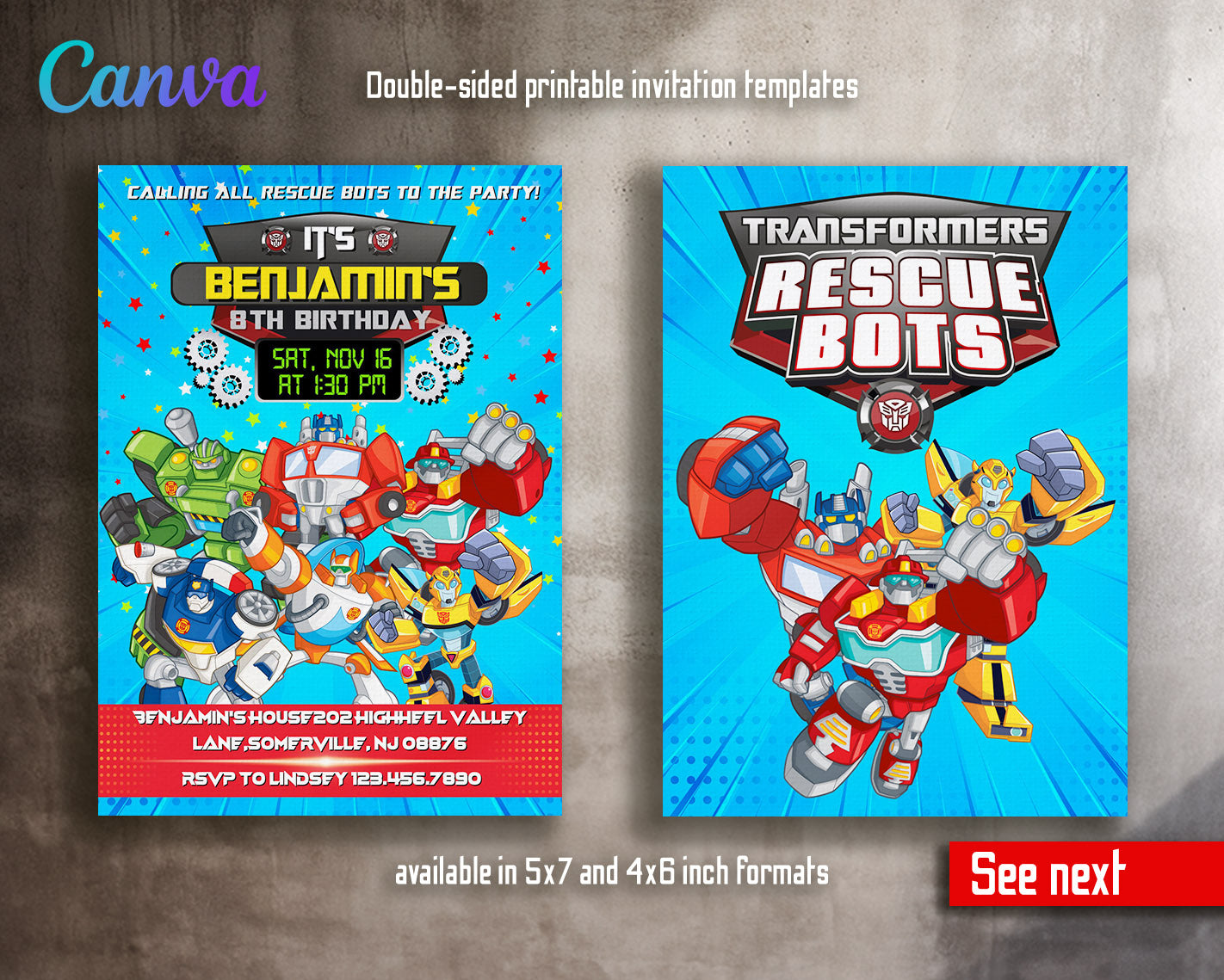Related Tags: transformers invite, transformer birthday, rescue bots invite, rescue invitation, rescue bots party, optimus prime invite, editable invitation, birthday invitation, printable invitation, invite template, bumblebee evite, autobots birthday, boy birthday