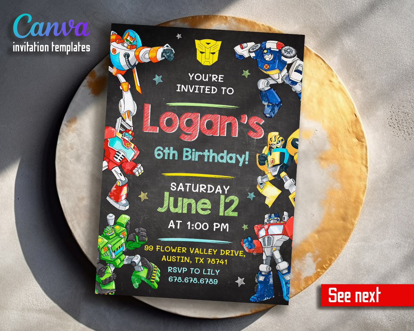 Related Tags: transformers invite, transformer birthday, rescue bots invite, rescue invitation, rescue bots party, optimus prime invite, editable invitation, birthday invitation, printable invitation, invite template, bumblebee evite, autobots birthday, boy birthday