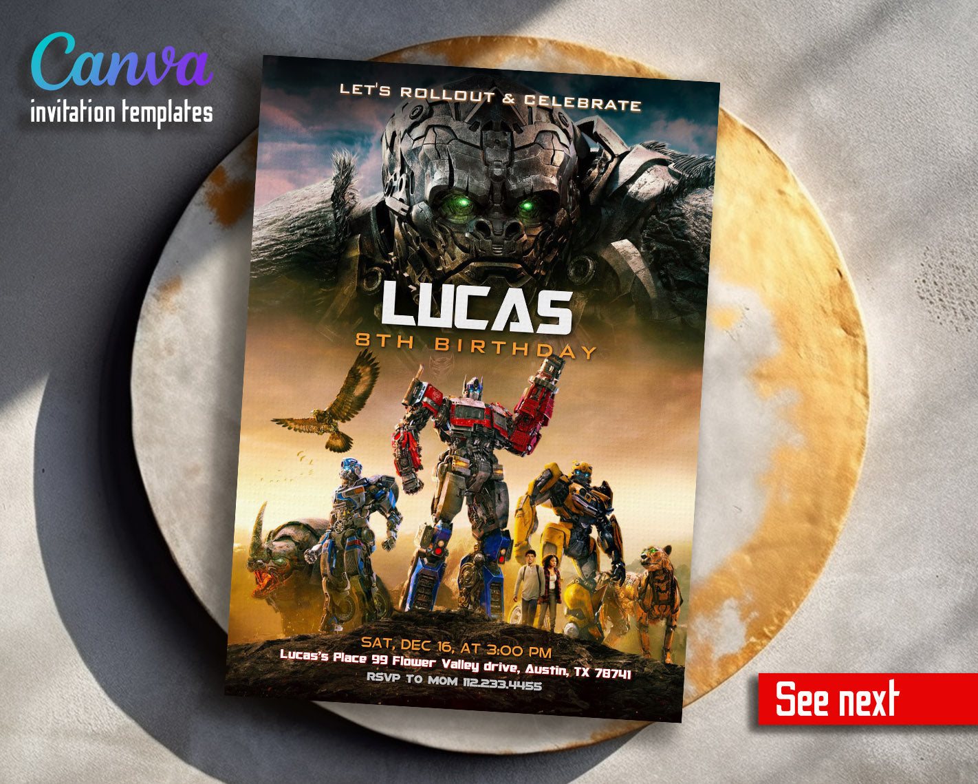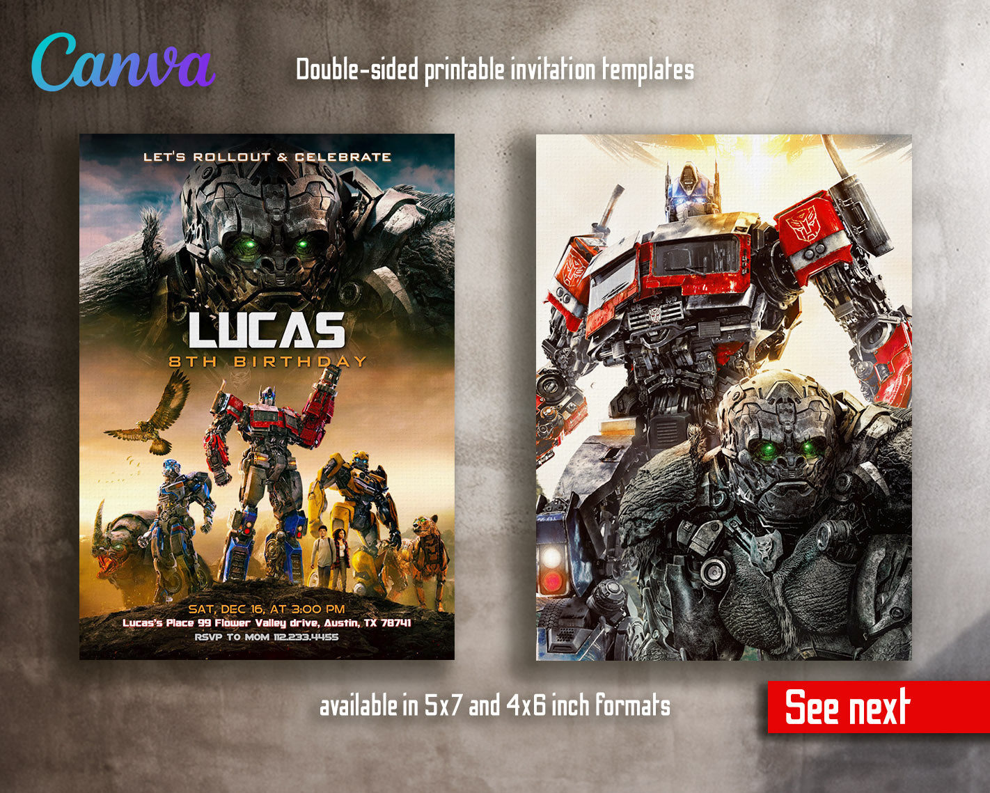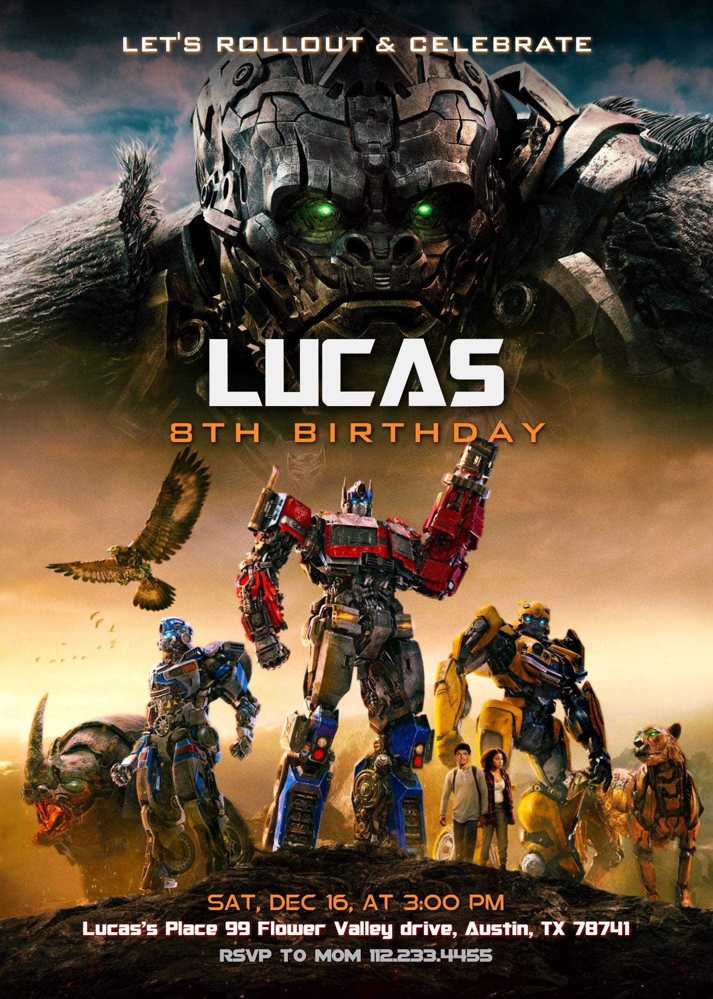 Related Tags: boy birthday, transformers party, rescue bots invite, rescue bots birthday, rise of the beasts, optimus primal, editable invitation, birthday invitation, printable invitation, transformers invite, optimus prime evite, gorilla transformer,