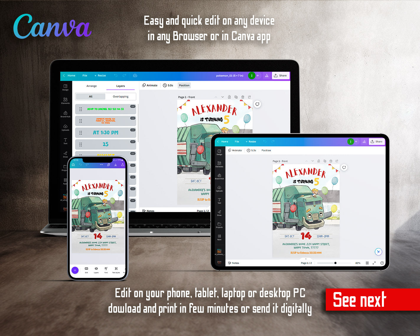 Related Tags: Trash Truck birthday, Trash Truck invite, green Trash Truck, trash truck party, boy girl birthday, digital invite, Olive Keane, 1st 2nd 3rd bday, instant download, editable invitation, birthday invitation, printable invitation,