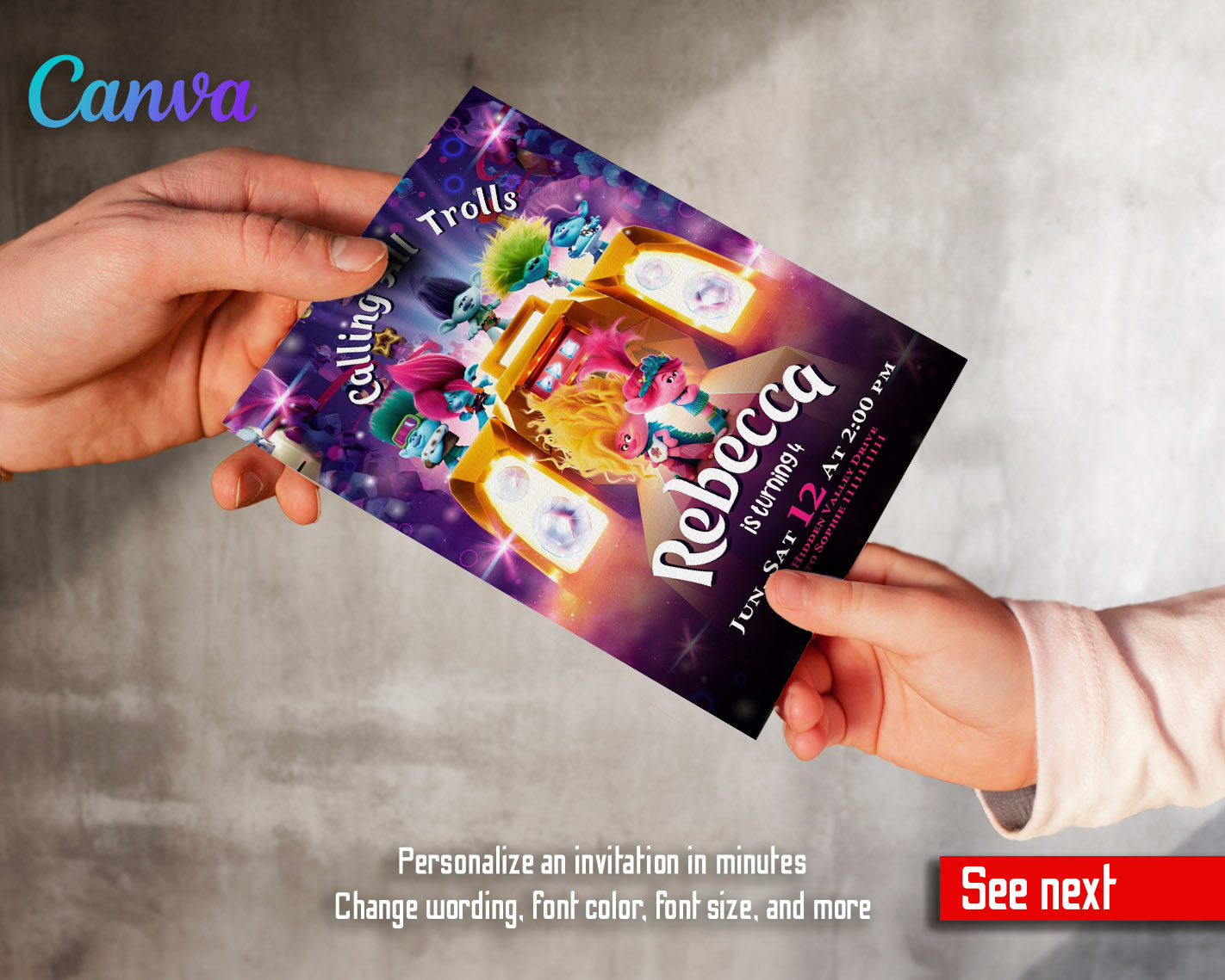 Printable Editable customizable Trolls Poppy birthday party invitation digital template. Instant download invite.
