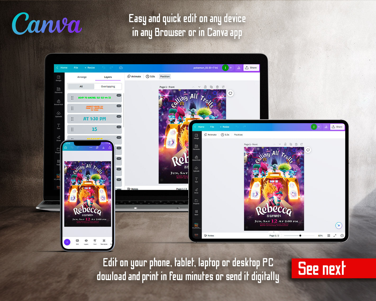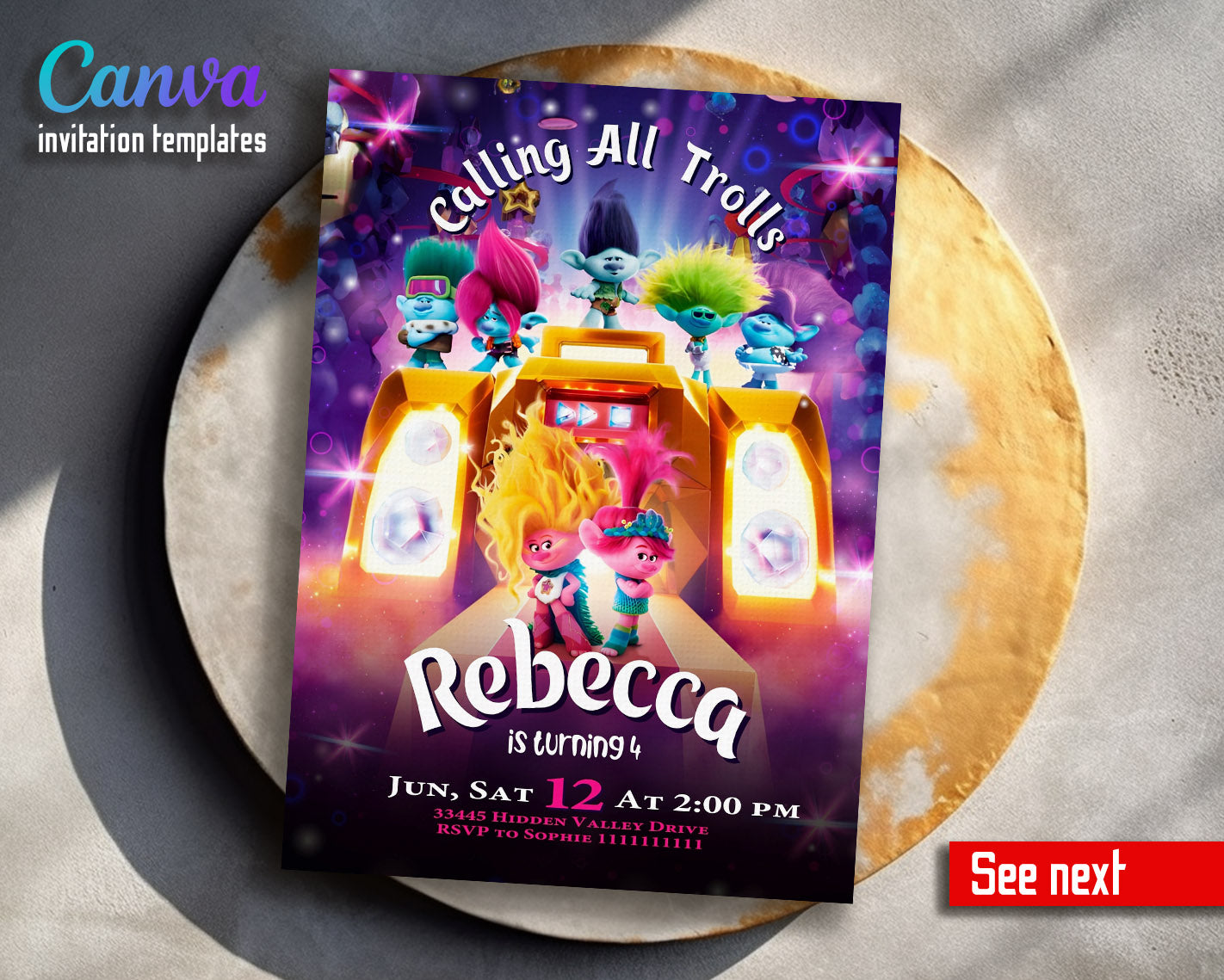 Related Tags: poppy invitation, poppy birthday, trolls invite, trolls invitation, minnie party, digital invite, editable invitation, birthday invitation, printable invitation, invite template, evite, girl birthday, trolls bday invite