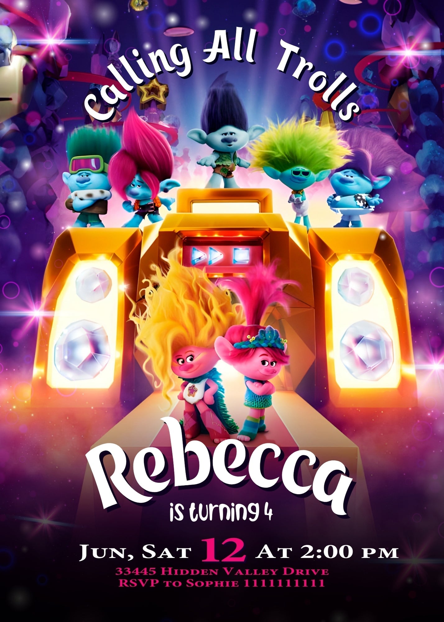 Trolls Poppy customizable invitation template | Share or Print | | HA617