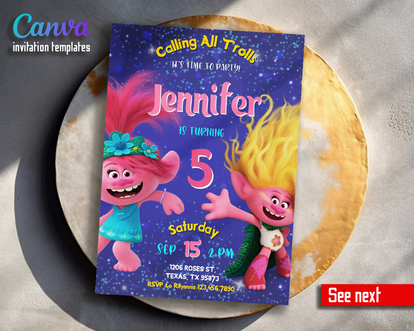 Related Tags: poppy invitation, poppy birthday, trolls invite, trolls invitation, minnie party, digital invite, editable invitation, birthday invitation, printable invitation, invite template, evite, girl birthday, trolls bday invite