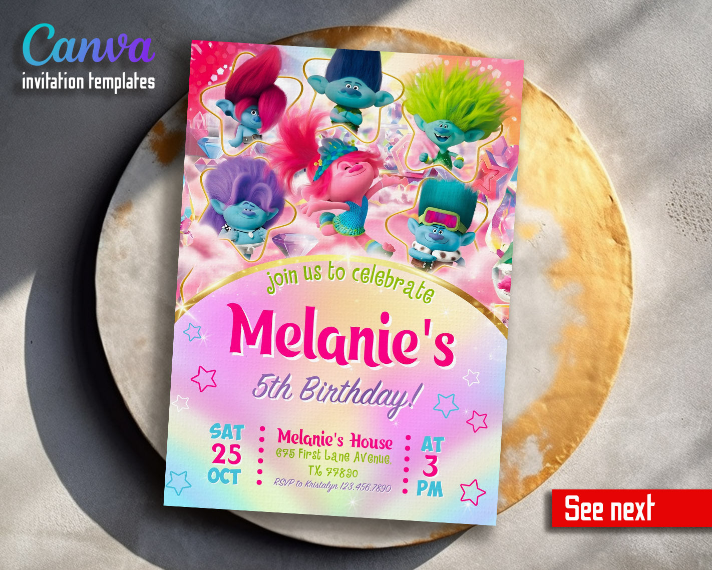 Related Tags: poppy invitation, poppy birthday, trolls invite, trolls invitation, minnie party, digital invite, editable invitation, birthday invitation, printable invitation, invite template, evite, girl birthday, trolls bday invite