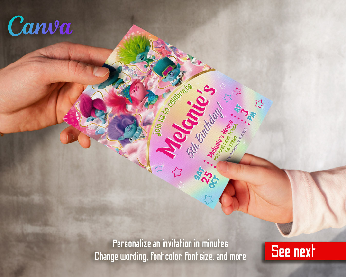 Printable Editable customizable Trolls Poppy birthday party invitation digital template. Instant download invite.