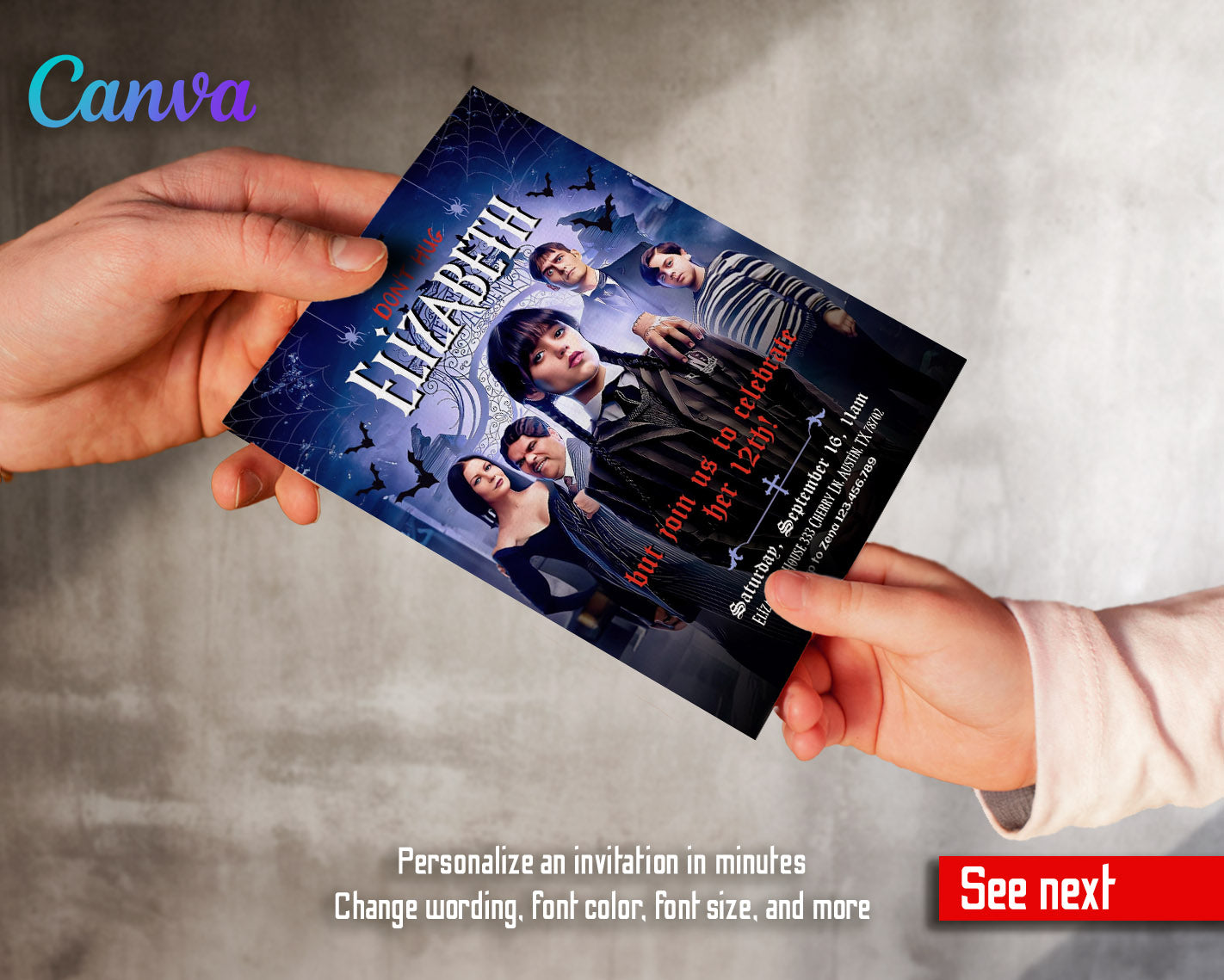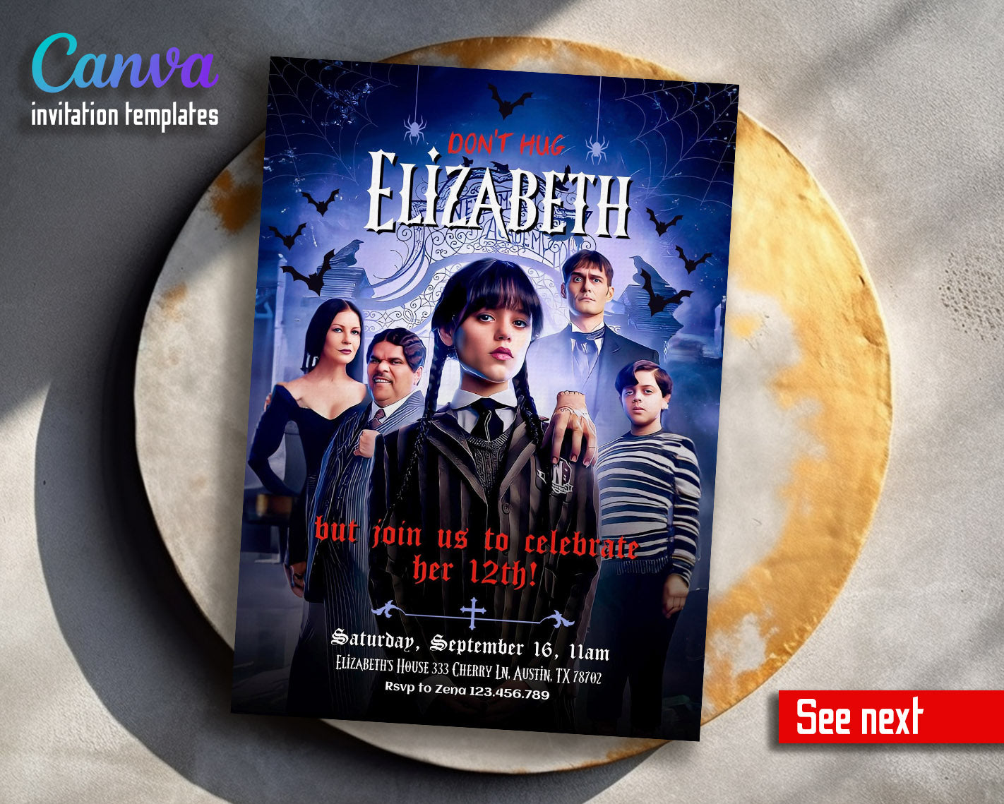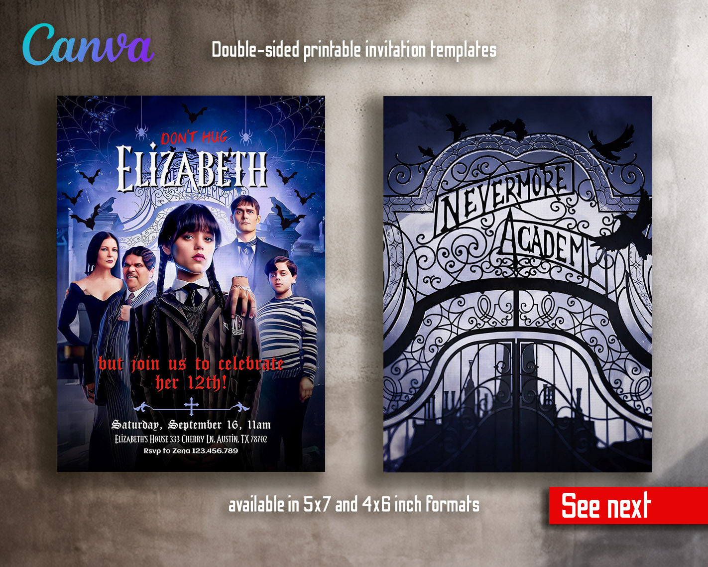 Related Tags: wednesday invite, wednesday birthday, addams family invite, addans invitation, wednesday party, digital invite, editable invitation, birthday invitation, printable invitation, invite template, scary witch, girl birthday,