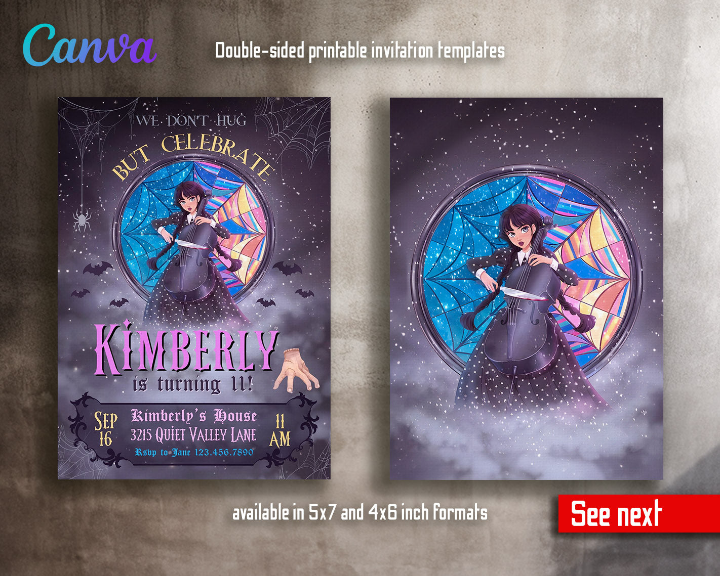 Related Tags: wednesday invite, wednesday birthday, addams family invite, addans invitation, wednesday party, digital invite, editable invitation, birthday invitation, printable invitation, invite template, scary witch, girl birthday,