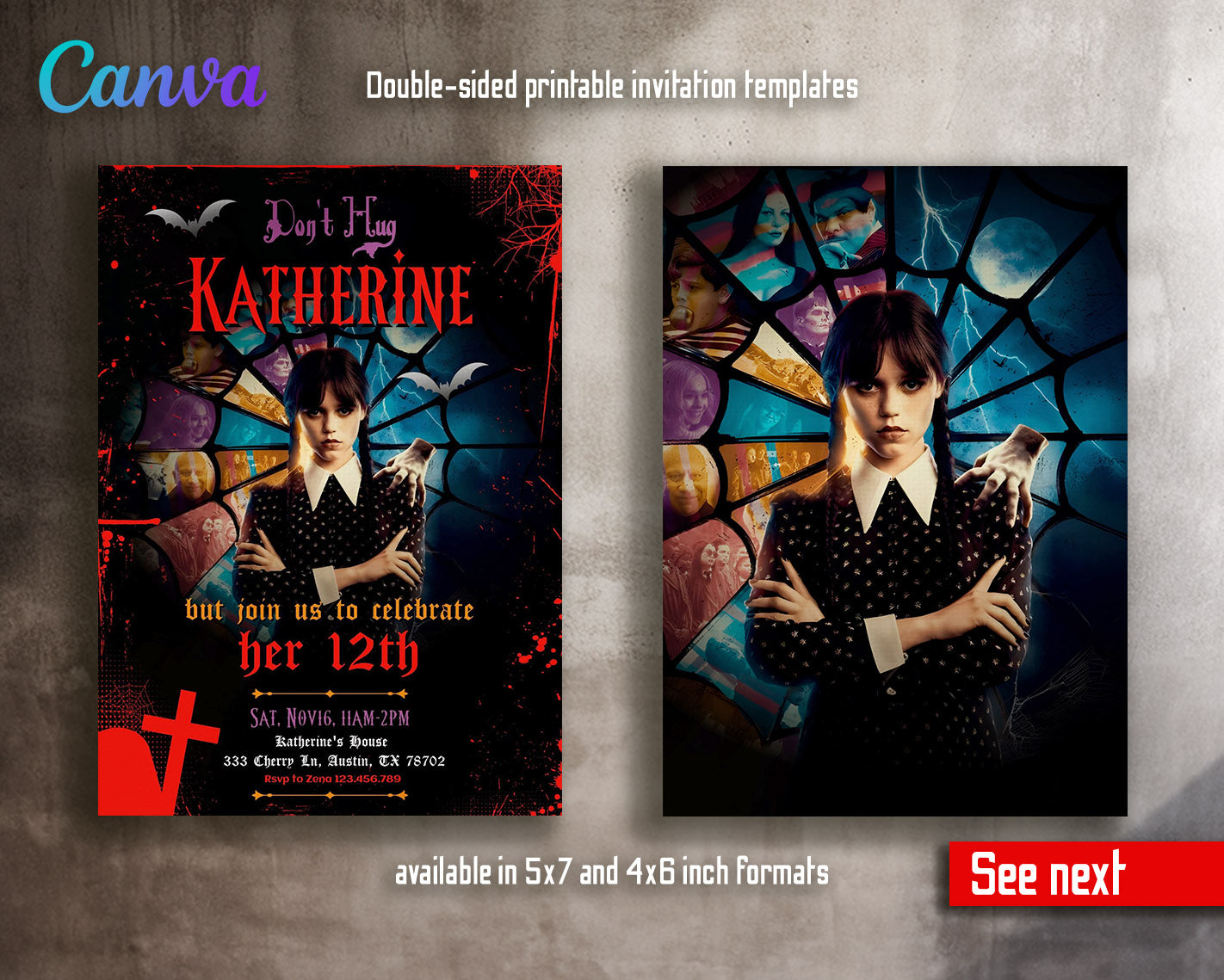 Related Tags: wednesday invite, wednesday birthday, addams family invite, addans invitation, wednesday party, digital invite, editable invitation, birthday invitation, printable invitation, invite template, scary witch, girl birthday,