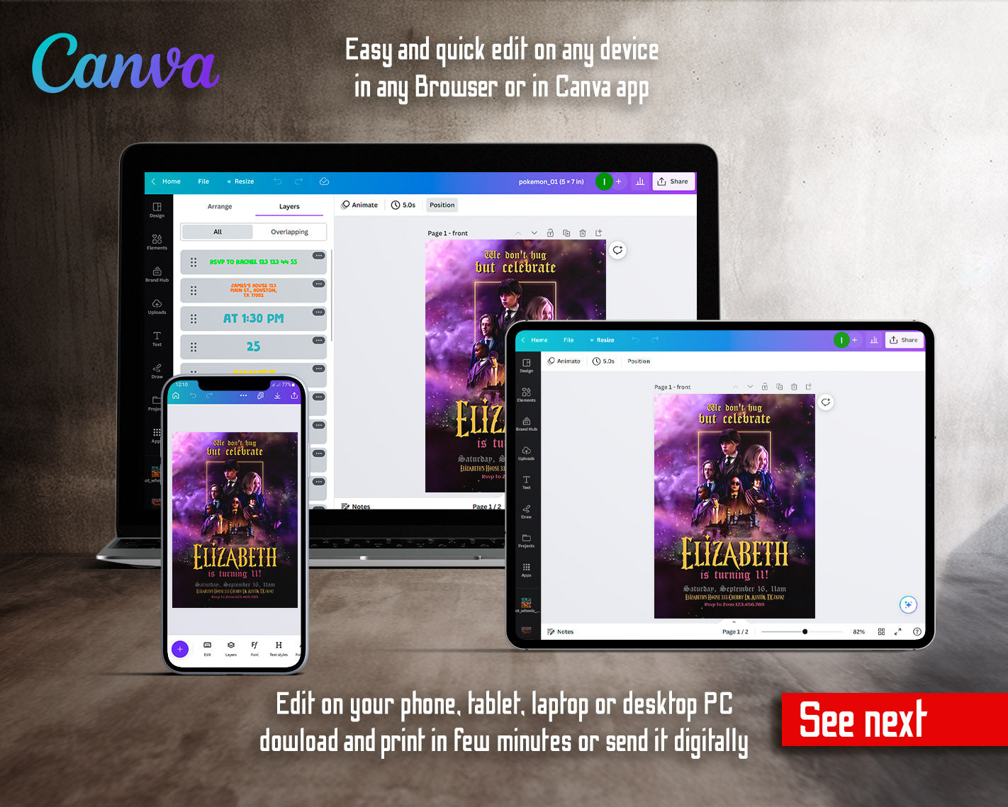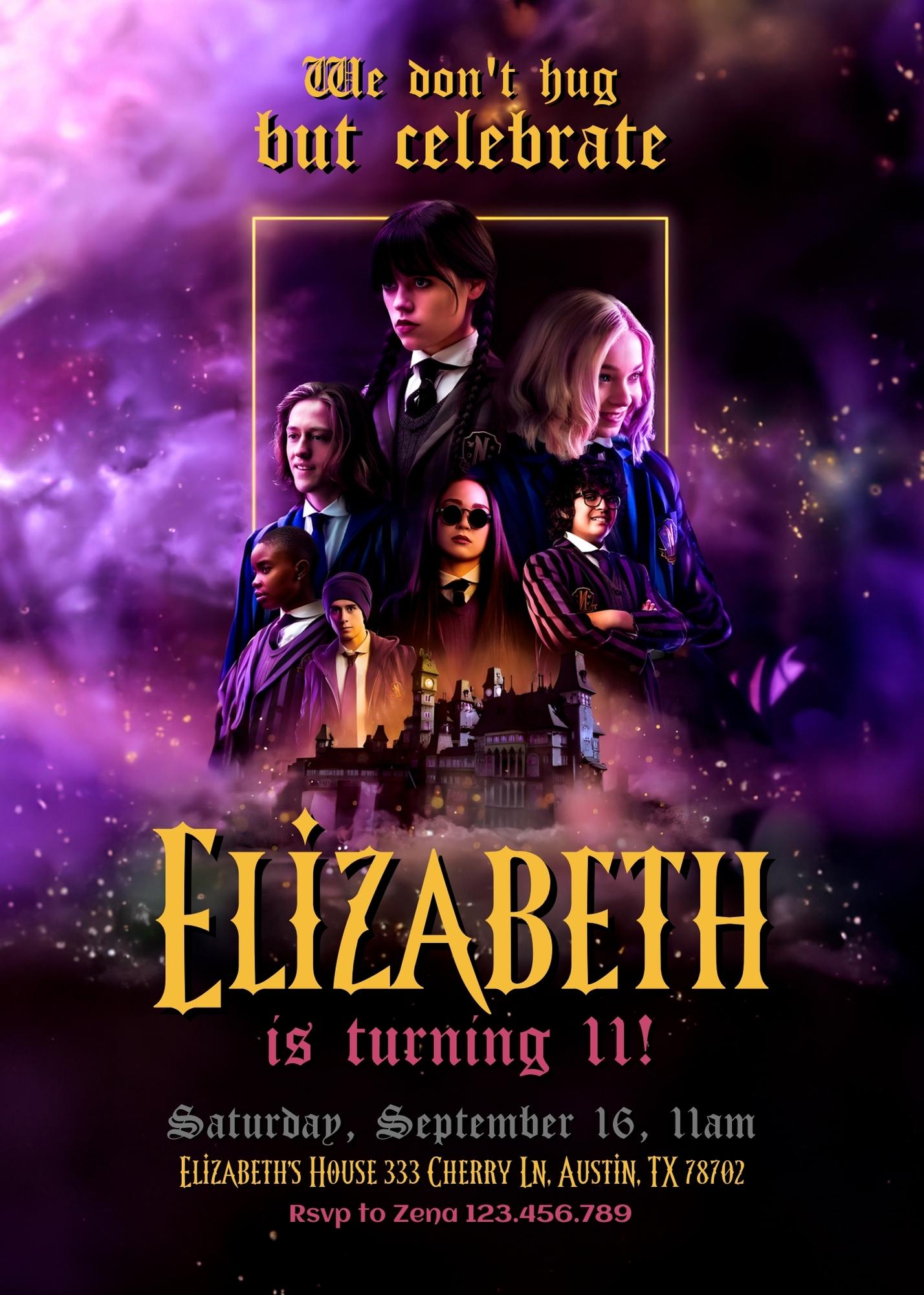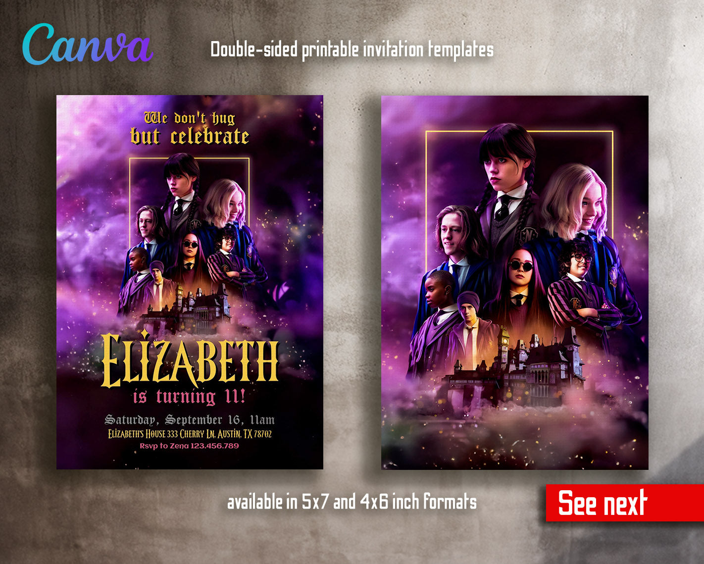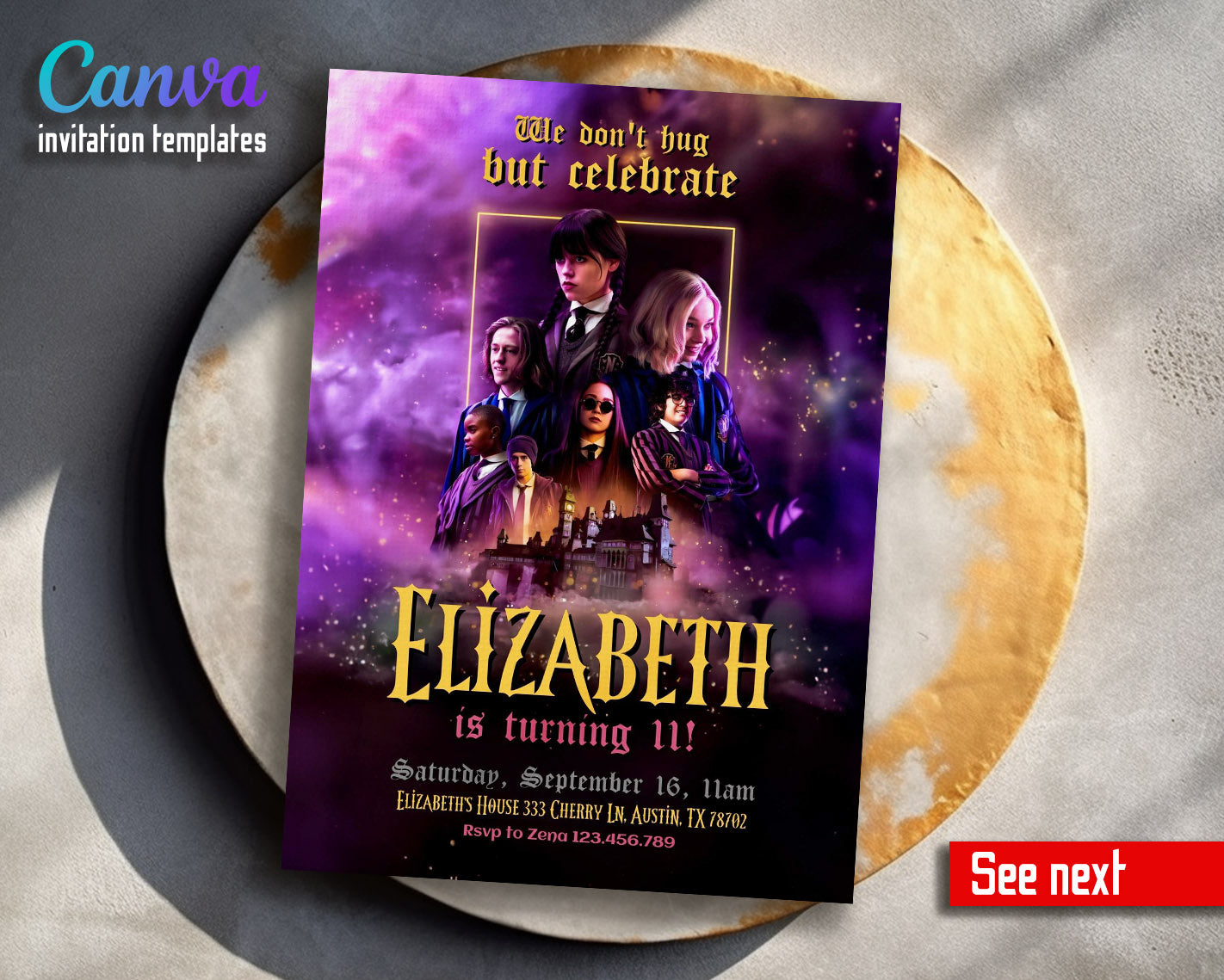 Related Tags: wednesday invite, wednesday birthday, addams family invite, addans invitation, wednesday party, digital invite, editable invitation, birthday invitation, printable invitation, invite template, scary witch, girl birthday,