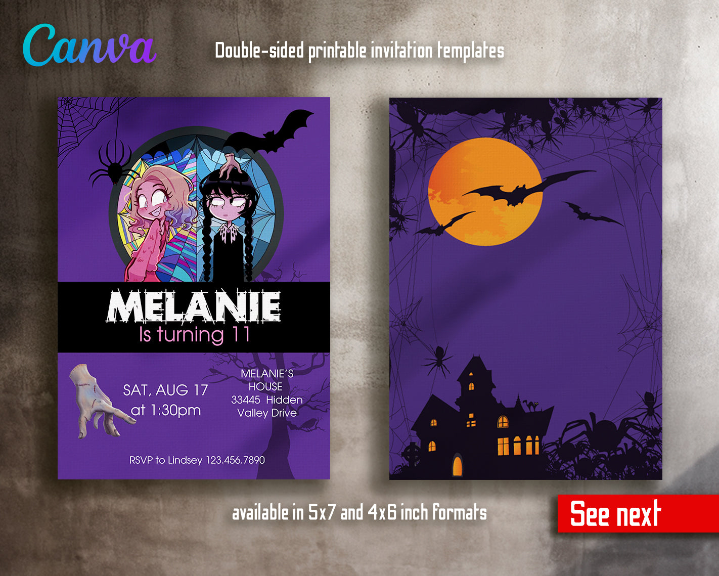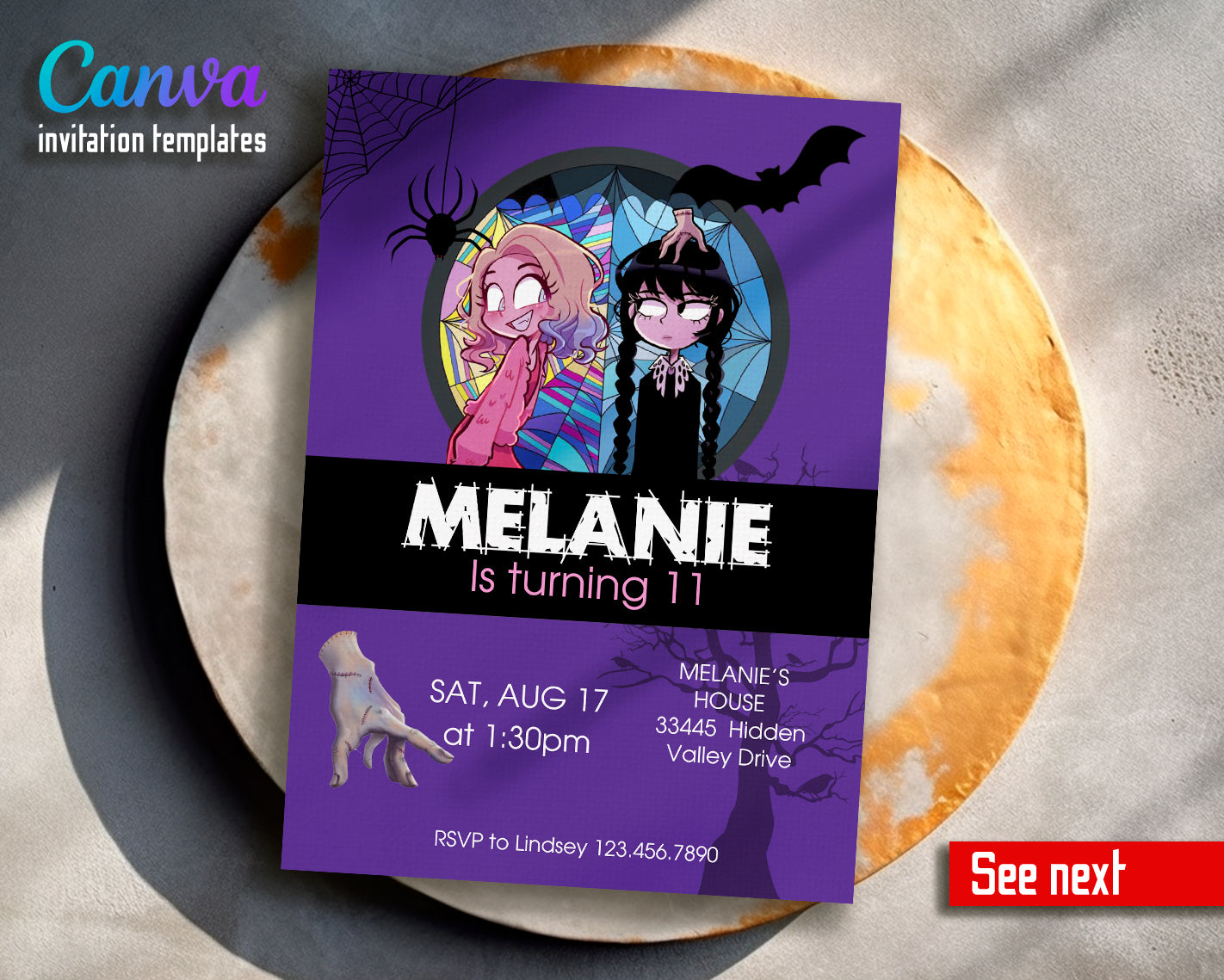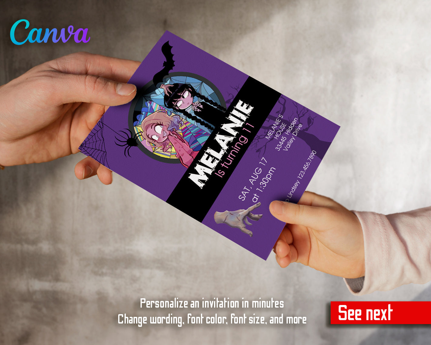 Wednesday birthday invite, Printable Girl Birthday Invitation, editable invitation, Instant Download, addams family birthday party