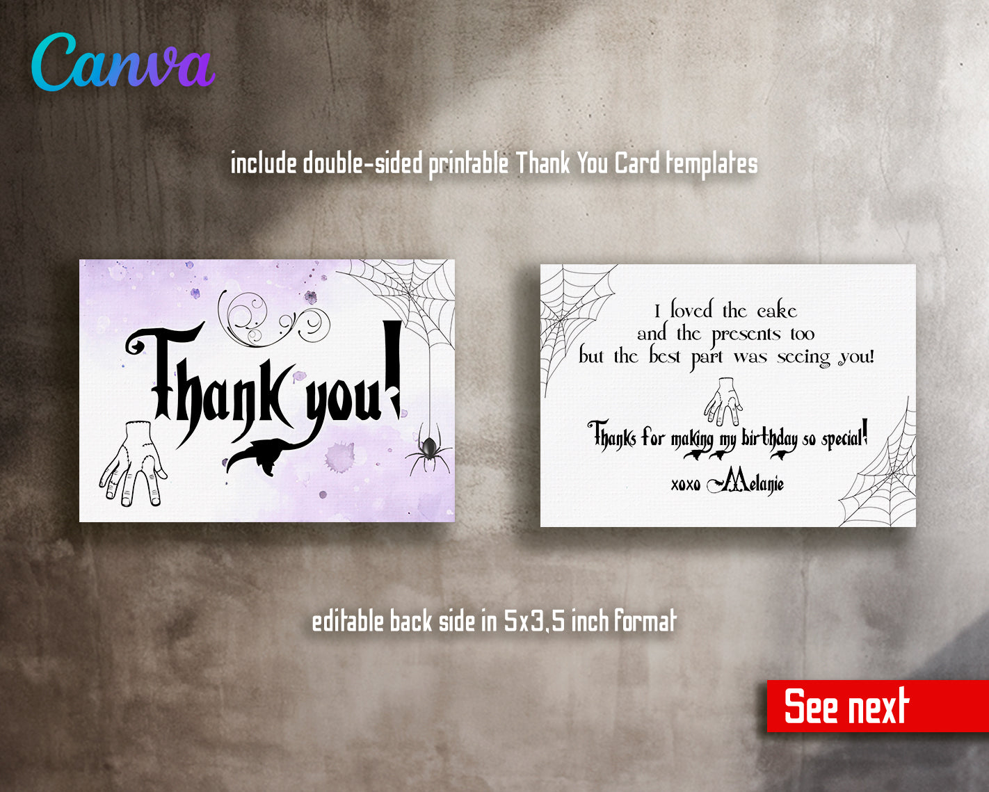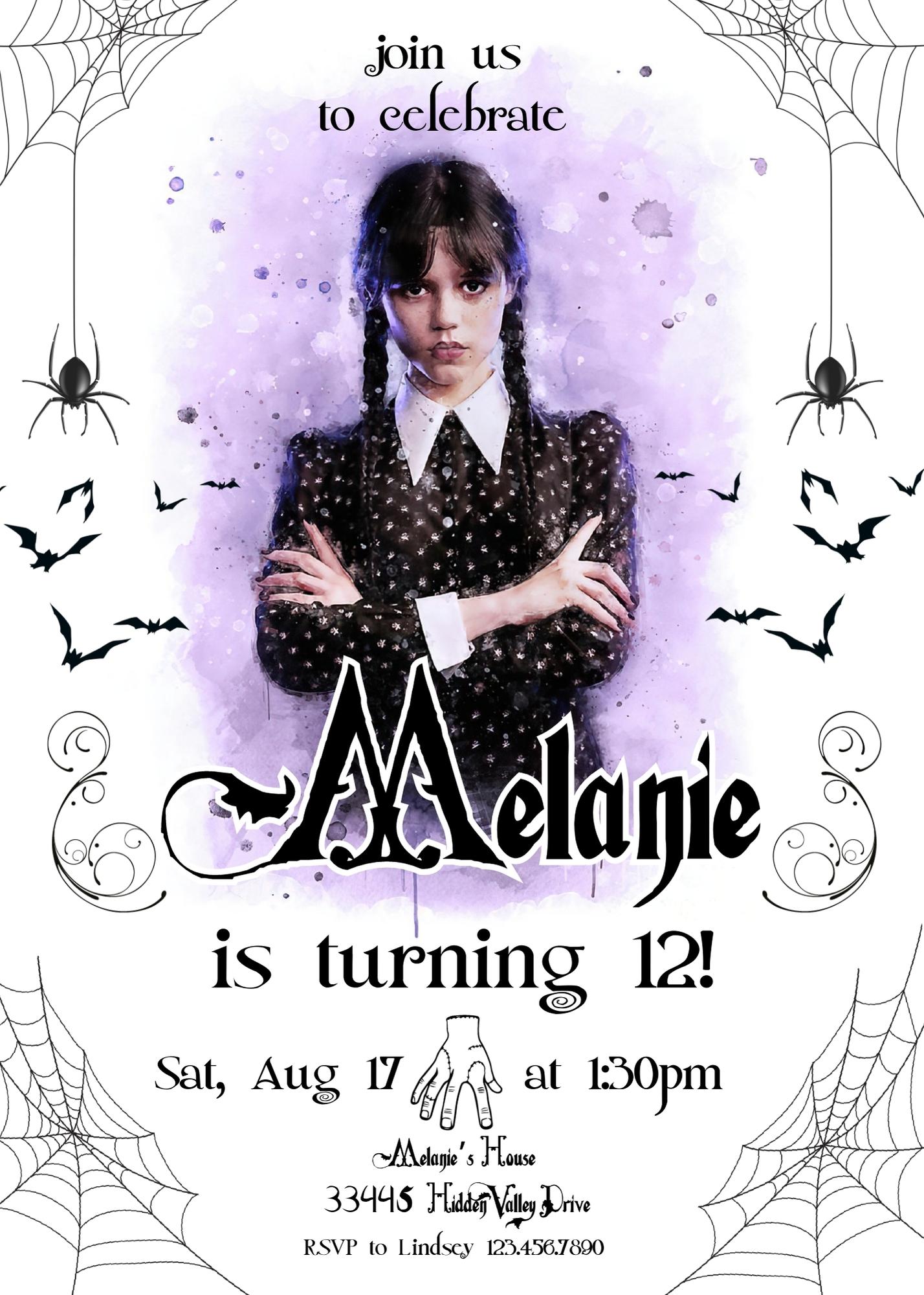 Wednesday birthday invite, Printable Girl Birthday Invitation, editable invitation, Instant Download, addams family birthday party