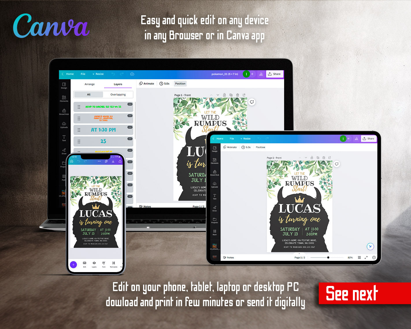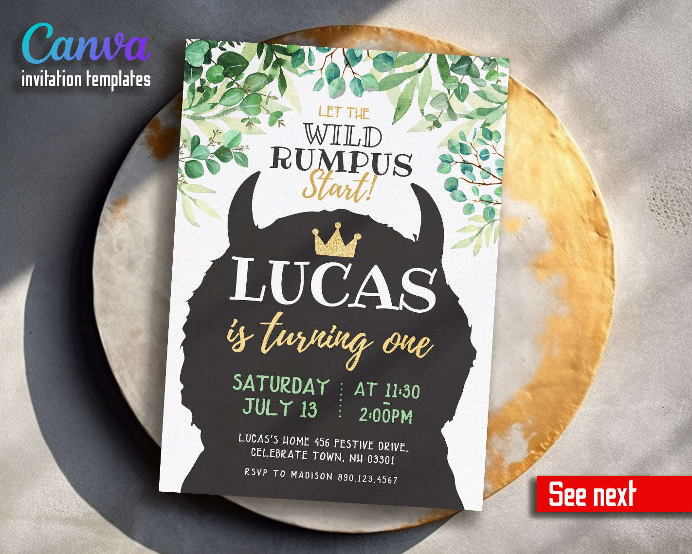 Related Tags: Wild Things birthday, Maurice Sendak, Wild Things invitу, Wild Things party, boy girl birthday, fairytale invite, storybook party, wild one invitation, 1st 2nd 3rd bday, editable invitation, birthday invitation, printable invitation, invite template