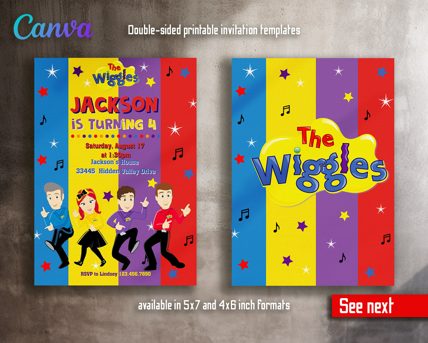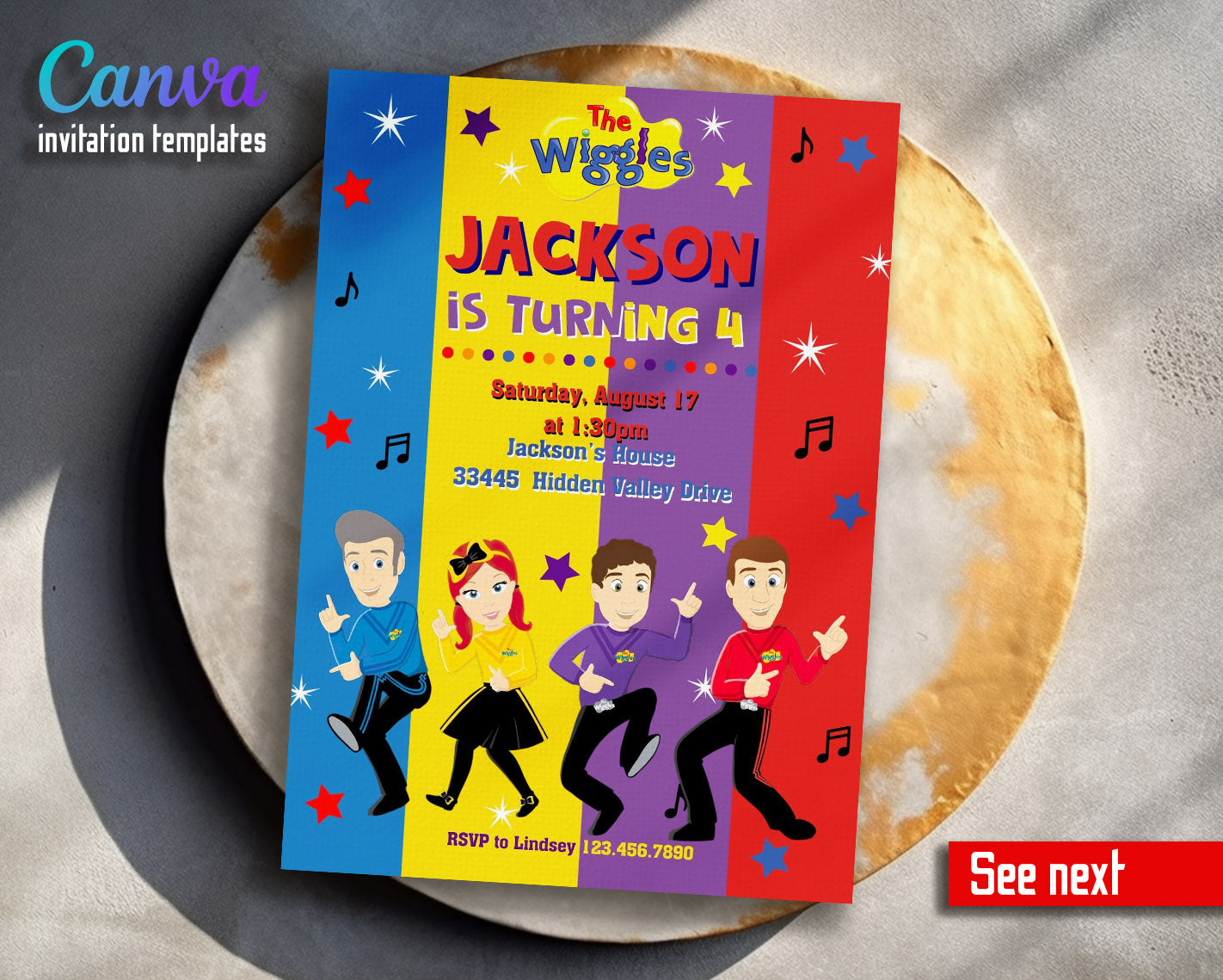 Related Tags: wiggles invitation, wiggles birthday, wiggle invite, music invitation, wiggles party, digital invite, editable invitation, birthday invitation, printable invitation, invite template, evite, girl birthday, boy birthday