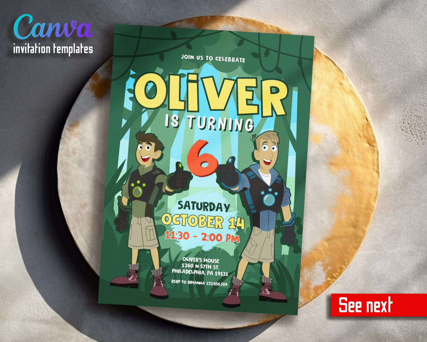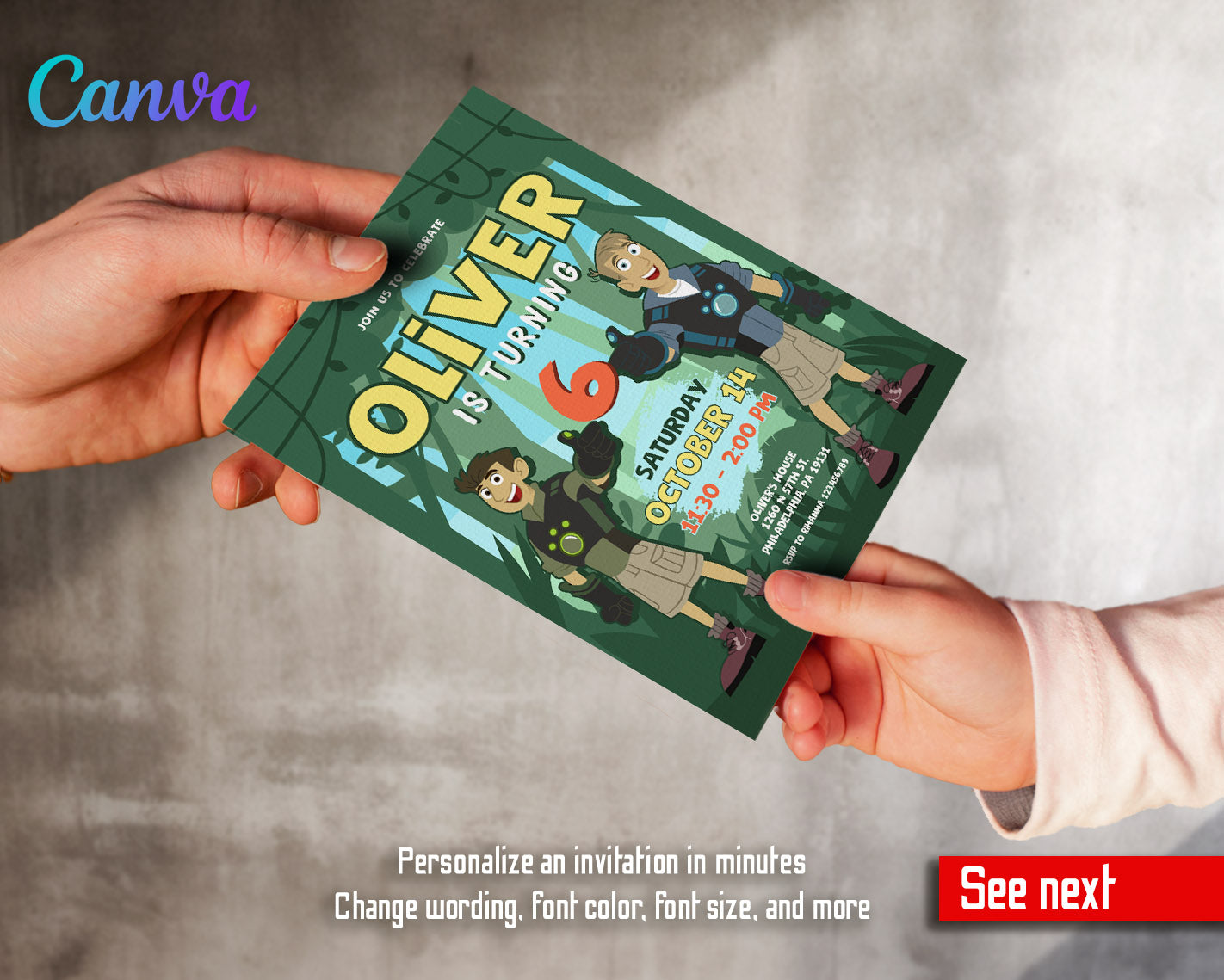 Related Tags: Wild Kratts birthday, Wild Kratts invite, Wild animals invite, Wild Kratts party, boy girl birthday, safari invite, Wild animals party, Kratts invitation, 1st 2nd 3rd bday, editable invitation, birthday invitation, printable invitation, invite template