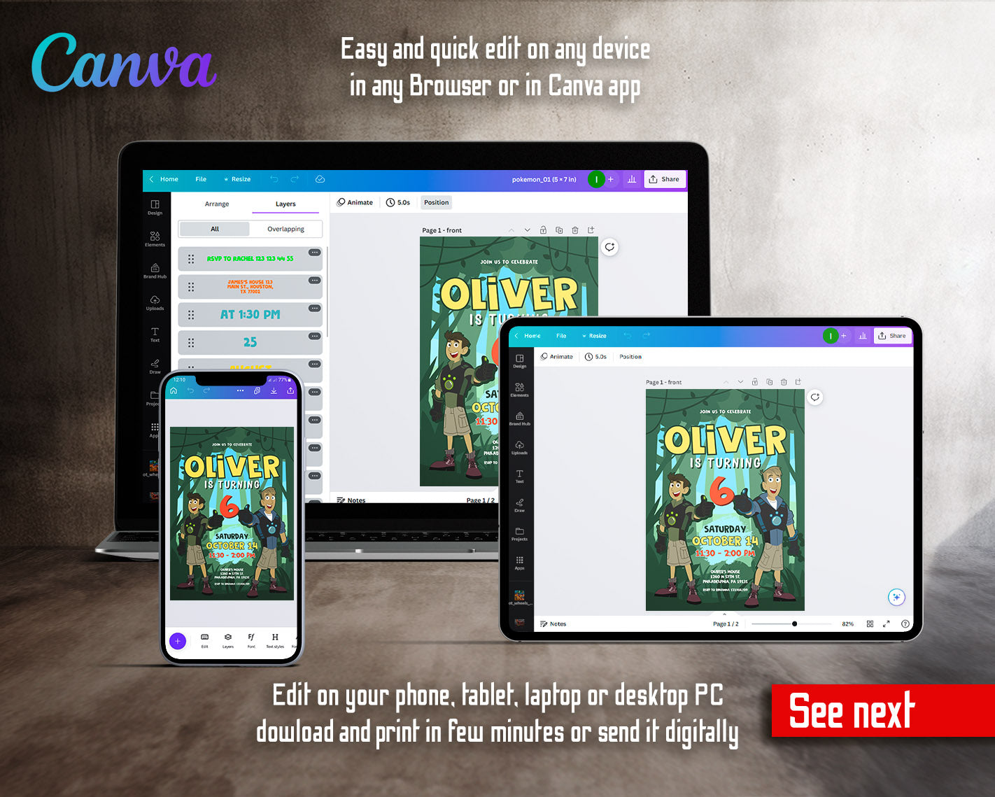 All the invitations are for self-editing. You will edit your template in Canva. It’s easy whether you're using the web browser or the app.