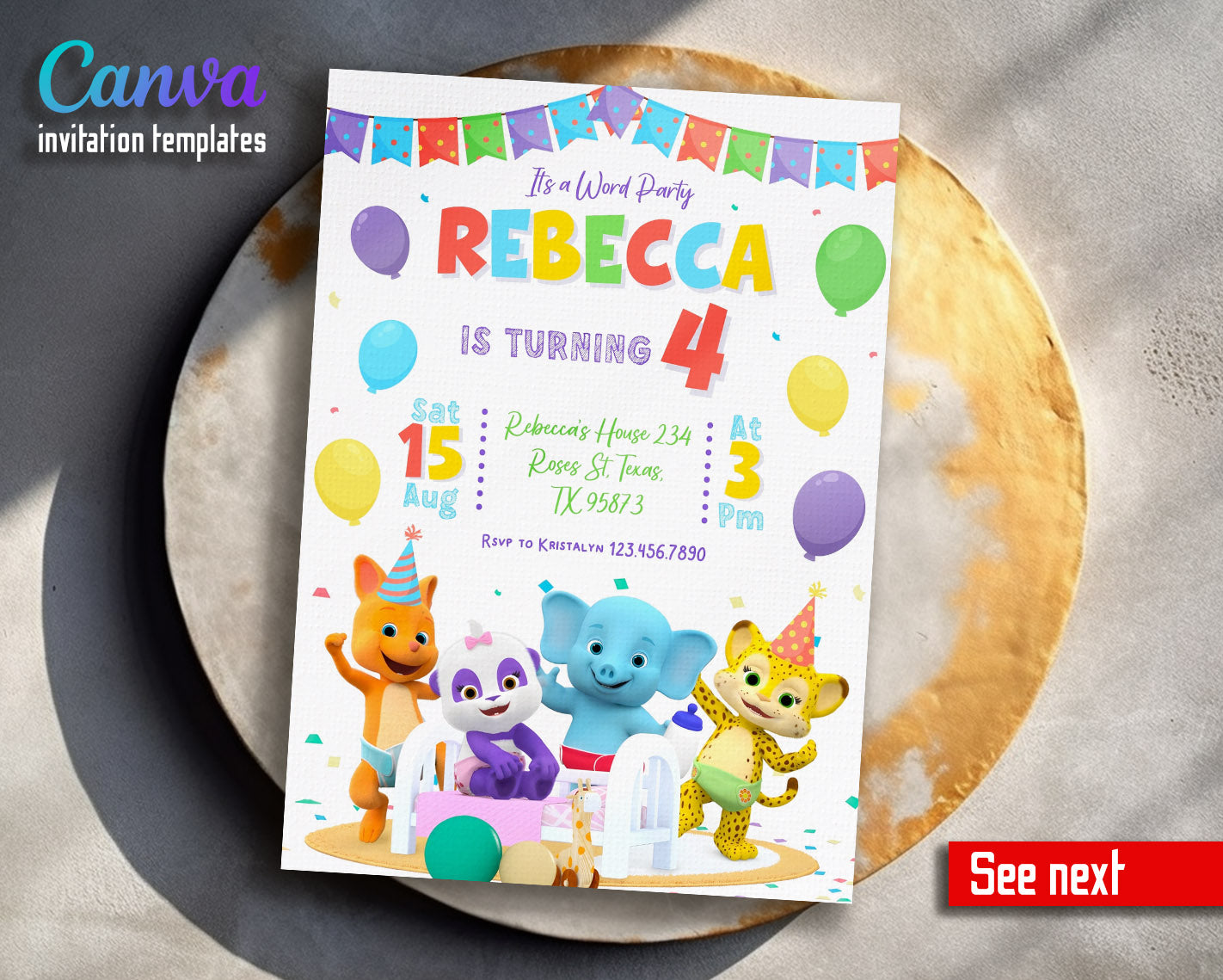 Related Tags: word party invite, Franny Bailey, Kip Lulu, word party birthday, Tilly invitation, first birthday party, editable invitation, birthday invitation, printable invitation, invite template, girl evite, 1st word invite,